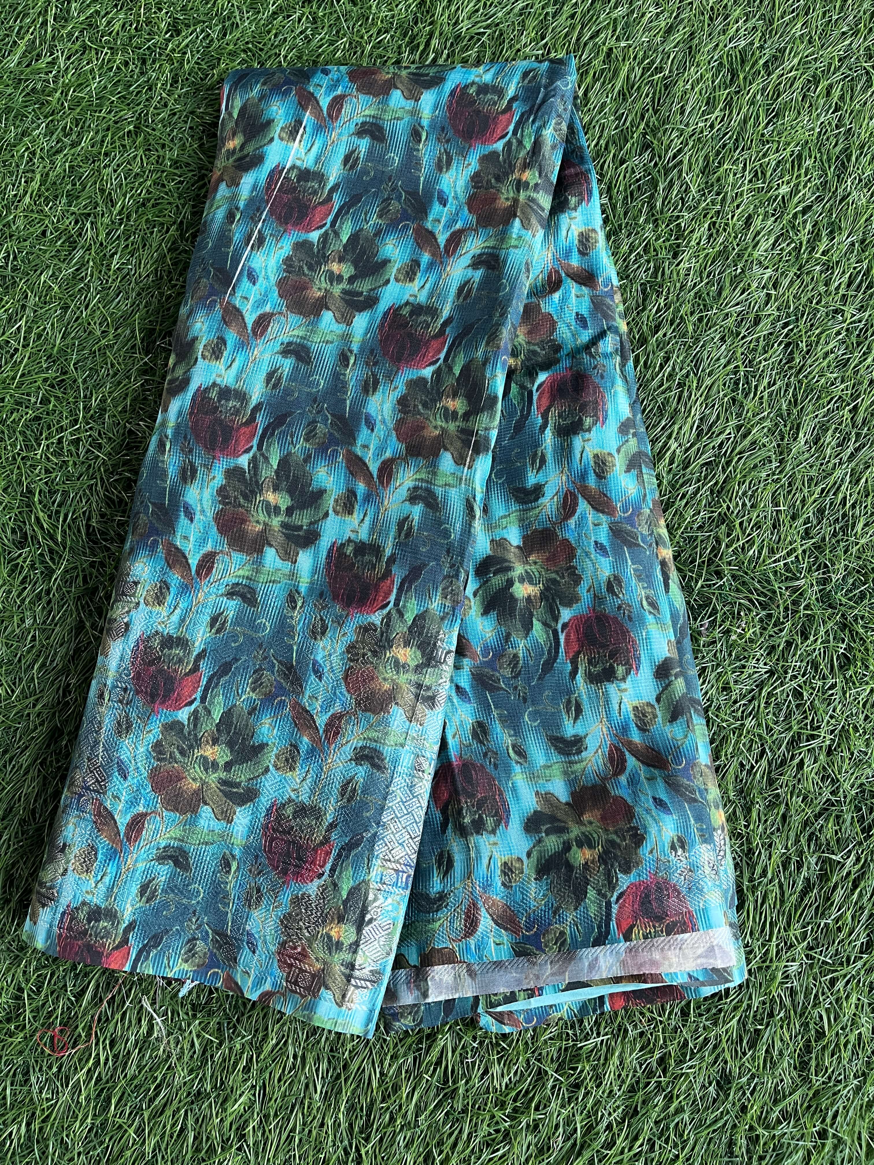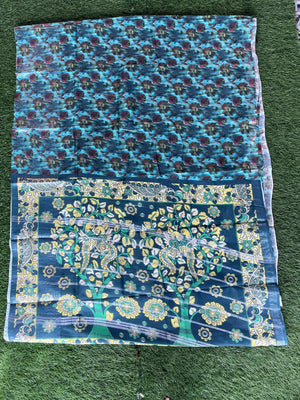 Cotton Warp with Semi Pattu Weaving & Silver Zari Border With Digital Print