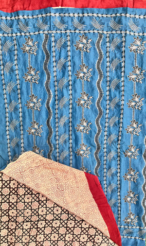 Elevate your style with this exquisite silk saree that beautifully combines the richness of embroidery, the timeless artistry of Kalamkari, and the vibrant charm of tie and dye. Meticulously handcrafted, this masterpiece showcases intricate embroidered details, complemented by authentic Kalamkari designs that narrate cultural stories, while the vibrant tie and dye patterns add a contemporary touch. Perfect for weddings, festive occasions, or special celebrations, this saree is a harmonious blend of tradition and modernity, crafted for the discerning connoisseur of elegance.