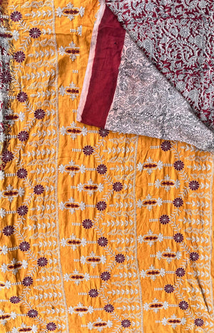 Elevate your style with this exquisite silk saree that beautifully combines the richness of embroidery, the timeless artistry of Kalamkari, and the vibrant charm of tie and dye. Meticulously handcrafted, this masterpiece showcases intricate embroidered details, complemented by authentic Kalamkari designs that narrate cultural stories, while the vibrant tie and dye patterns add a contemporary touch. Perfect for weddings, festive occasions, or special celebrations, this saree is a harmonious blend of tradition and modernity, crafted for the discerning connoisseur of elegance.
