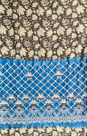 Elevate your style with this exquisite silk saree that beautifully combines the richness of embroidery, the timeless artistry of Kalamkari, and the vibrant charm of tie and dye. Meticulously handcrafted, this masterpiece showcases intricate embroidered details, complemented by authentic Kalamkari designs that narrate cultural stories, while the vibrant tie and dye patterns add a contemporary touch. Perfect for weddings, festive occasions, or special celebrations, this saree is a harmonious blend of tradition and modernity, crafted for the discerning connoisseur of elegance.