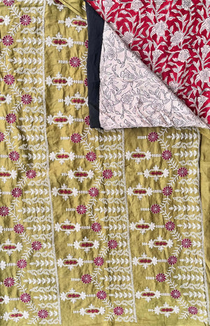 Elevate your style with this exquisite silk saree that beautifully combines the richness of embroidery, the timeless artistry of Kalamkari, and the vibrant charm of tie and dye. Meticulously handcrafted, this masterpiece showcases intricate embroidered details, complemented by authentic Kalamkari designs that narrate cultural stories, while the vibrant tie and dye patterns add a contemporary touch. Perfect for weddings, festive occasions, or special celebrations, this saree is a harmonious blend of tradition and modernity, crafted for the discerning connoisseur of elegance.