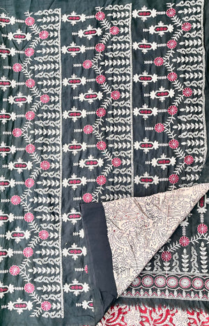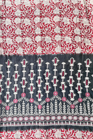 Elevate your style with this exquisite silk saree that beautifully combines the richness of embroidery, the timeless artistry of Kalamkari, and the vibrant charm of tie and dye. Meticulously handcrafted, this masterpiece showcases intricate embroidered details, complemented by authentic Kalamkari designs that narrate cultural stories, while the vibrant tie and dye patterns add a contemporary touch. Perfect for weddings, festive occasions, or special celebrations, this saree is a harmonious blend of tradition and modernity, crafted for the discerning connoisseur of elegance.