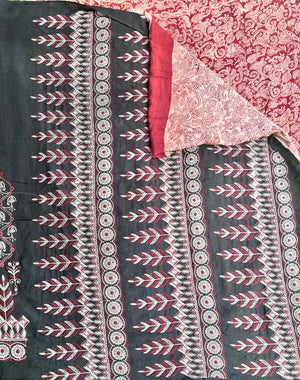Elevate your style with this exquisite silk saree that beautifully combines the richness of embroidery, the timeless artistry of Kalamkari, and the vibrant charm of tie and dye. Meticulously handcrafted, this masterpiece showcases intricate embroidered details, complemented by authentic Kalamkari designs that narrate cultural stories, while the vibrant tie and dye patterns add a contemporary touch. Perfect for weddings, festive occasions, or special celebrations, this saree is a harmonious blend of tradition and modernity, crafted for the discerning connoisseur of elegance.