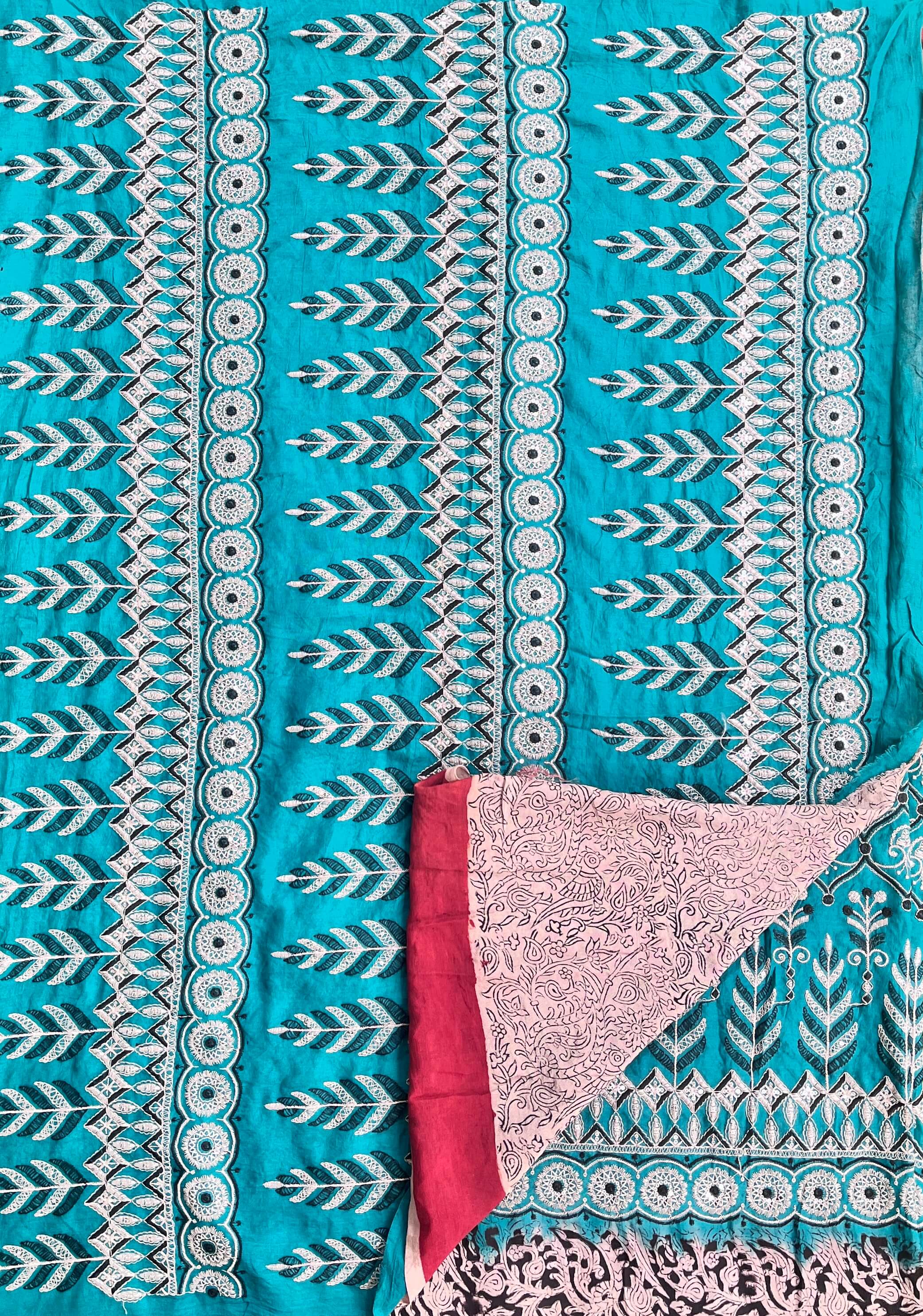 Elevate your style with this exquisite silk saree that beautifully combines the richness of embroidery, the timeless artistry of Kalamkari, and the vibrant charm of tie and dye. Meticulously handcrafted, this masterpiece showcases intricate embroidered details, complemented by authentic Kalamkari designs that narrate cultural stories, while the vibrant tie and dye patterns add a contemporary touch. Perfect for weddings, festive occasions, or special celebrations, this saree is a harmonious blend of tradition and modernity, crafted for the discerning connoisseur of elegance.