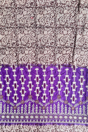 Elevate your style with this exquisite silk saree that beautifully combines the richness of embroidery, the timeless artistry of Kalamkari, and the vibrant charm of tie and dye. Meticulously handcrafted, this masterpiece showcases intricate embroidered details, complemented by authentic Kalamkari designs that narrate cultural stories, while the vibrant tie and dye patterns add a contemporary touch. Perfect for weddings, festive occasions, or special celebrations, this saree is a harmonious blend of tradition and modernity, crafted for the discerning connoisseur of elegance.