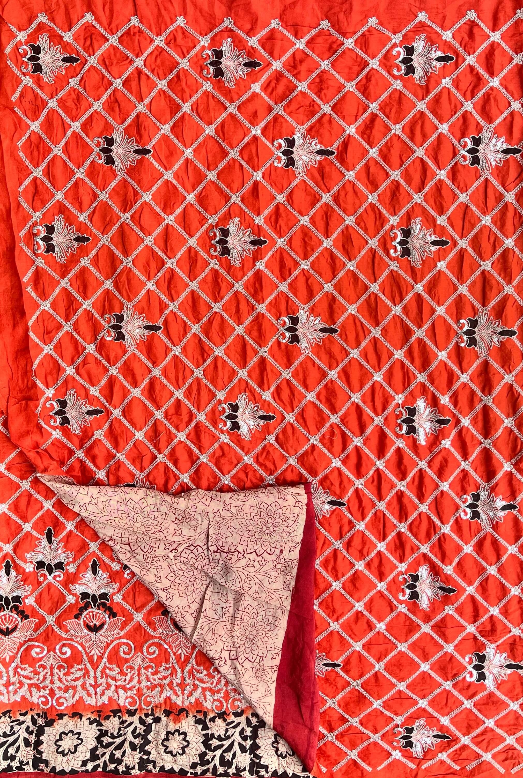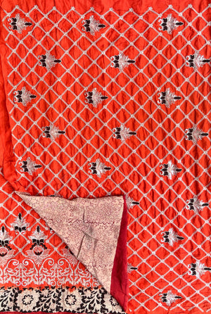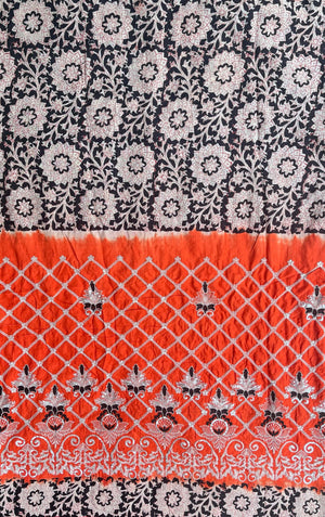 Elevate your style with this exquisite silk saree that beautifully combines the richness of embroidery, the timeless artistry of Kalamkari, and the vibrant charm of tie and dye. Meticulously handcrafted, this masterpiece showcases intricate embroidered details, complemented by authentic Kalamkari designs that narrate cultural stories, while the vibrant tie and dye patterns add a contemporary touch. Perfect for weddings, festive occasions, or special celebrations, this saree is a harmonious blend of tradition and modernity, crafted for the discerning connoisseur of elegance.