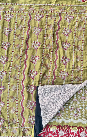 Elevate your style with this exquisite silk saree that beautifully combines the richness of embroidery, the timeless artistry of Kalamkari, and the vibrant charm of tie and dye. Meticulously handcrafted, this masterpiece showcases intricate embroidered details, complemented by authentic Kalamkari designs that narrate cultural stories, while the vibrant tie and dye patterns add a contemporary touch. Perfect for weddings, festive occasions, or special celebrations, this saree is a harmonious blend of tradition and modernity, crafted for the discerning connoisseur of elegance.