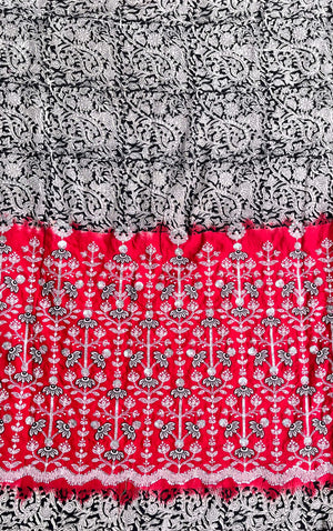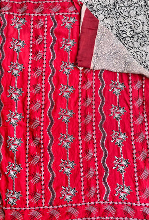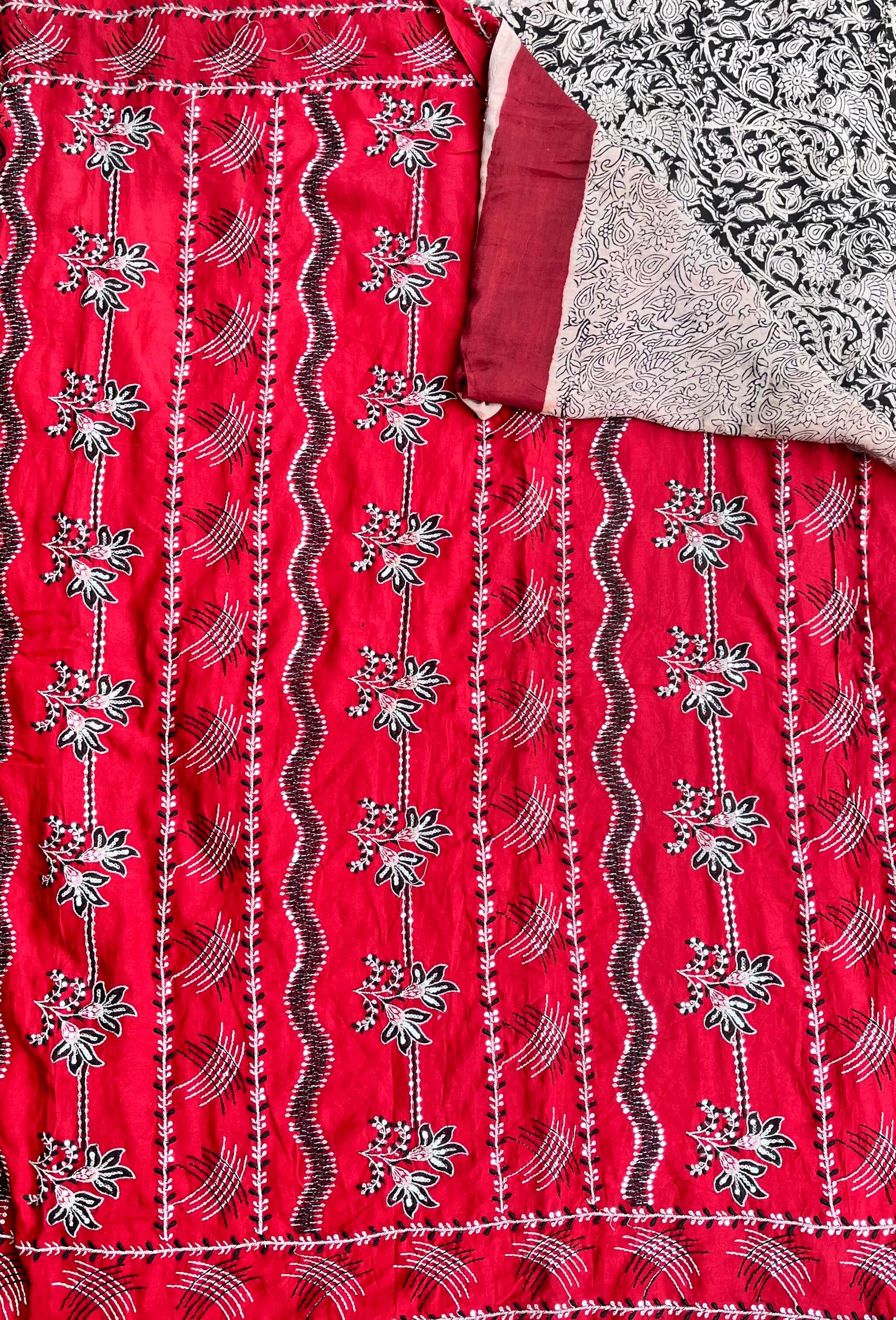 Elevate your style with this exquisite silk saree that beautifully combines the richness of embroidery, the timeless artistry of Kalamkari, and the vibrant charm of tie and dye. Meticulously handcrafted, this masterpiece showcases intricate embroidered details, complemented by authentic Kalamkari designs that narrate cultural stories, while the vibrant tie and dye patterns add a contemporary touch. Perfect for weddings, festive occasions, or special celebrations, this saree is a harmonious blend of tradition and modernity, crafted for the discerning connoisseur of elegance.