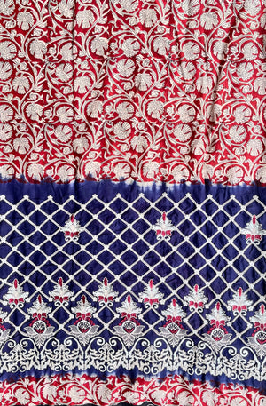 Elevate your style with this exquisite silk saree that beautifully combines the richness of embroidery, the timeless artistry of Kalamkari, and the vibrant charm of tie and dye. Meticulously handcrafted, this masterpiece showcases intricate embroidered details, complemented by authentic Kalamkari designs that narrate cultural stories, while the vibrant tie and dye patterns add a contemporary touch. Perfect for weddings, festive occasions, or special celebrations, this saree is a harmonious blend of tradition and modernity, crafted for the discerning connoisseur of elegance.
