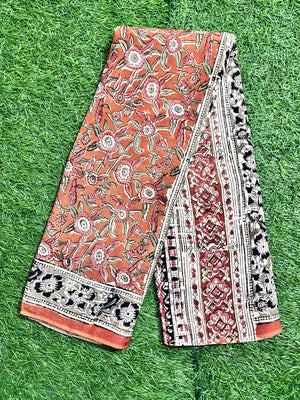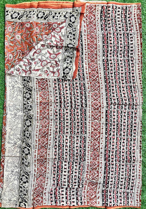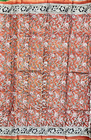 Hand Block Printed Kalamkari Chenuri Silk Saree KCSS-HB-M044