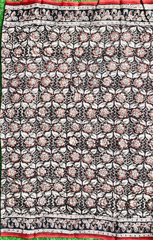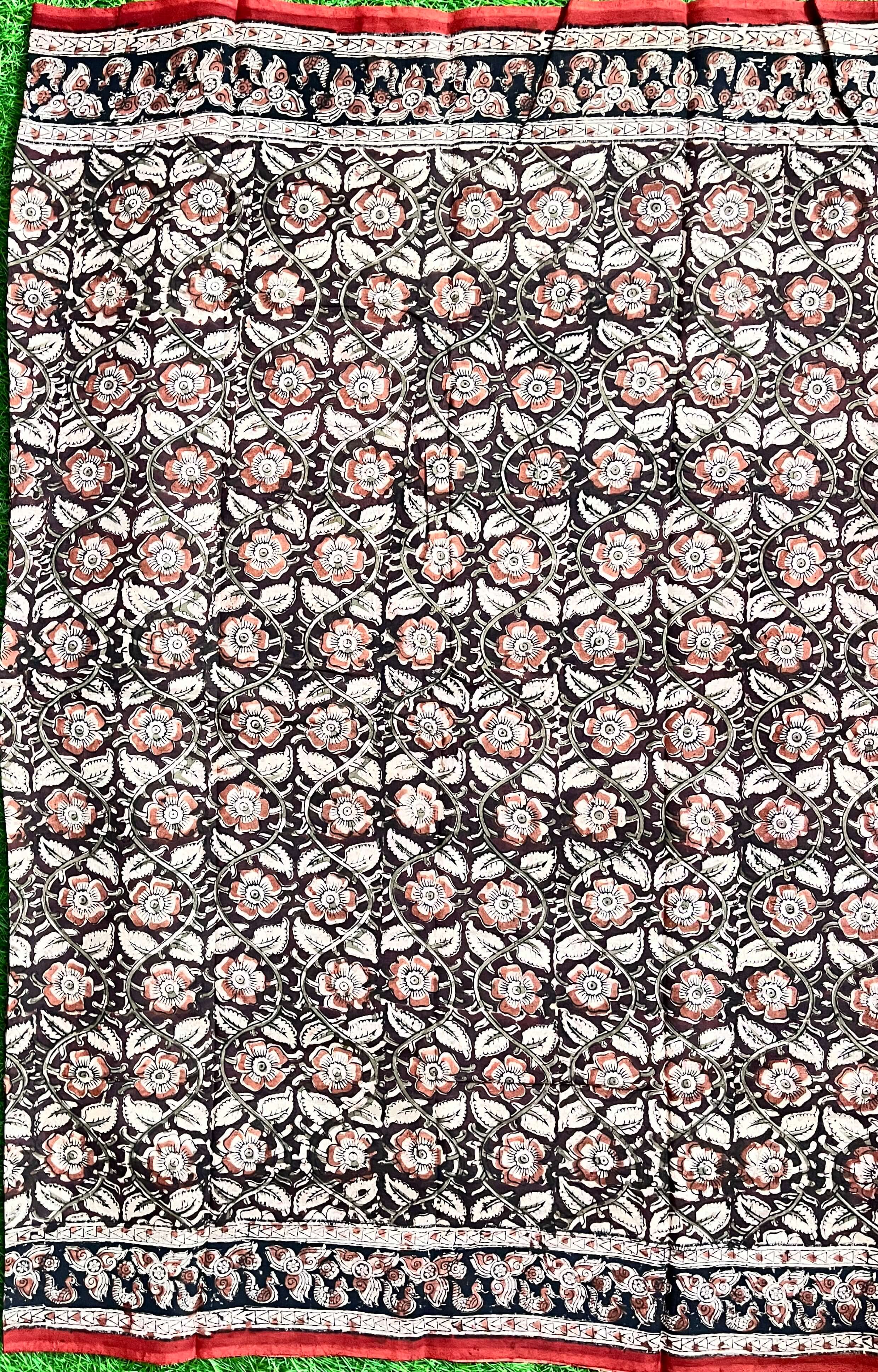 Hand Block Printed Kalamkari Chenuri Silk Saree KCSS-HB-M049