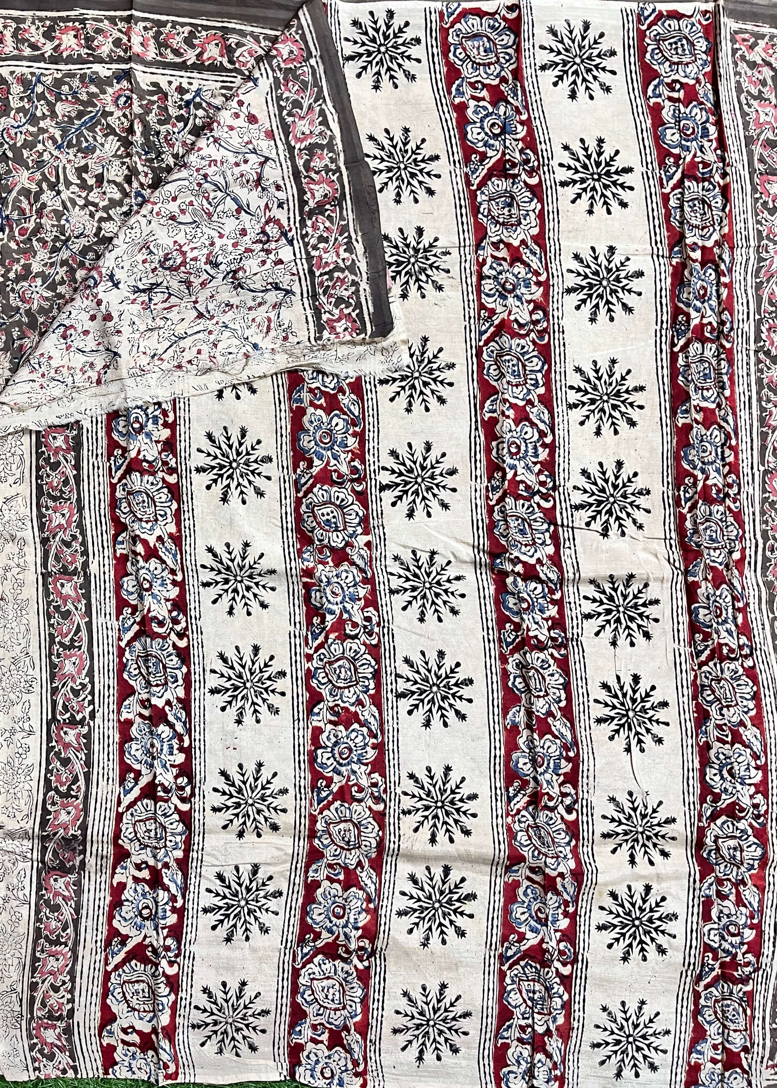 Made of our light weight cotton saree with kalamkari hand block prints using natural colors.