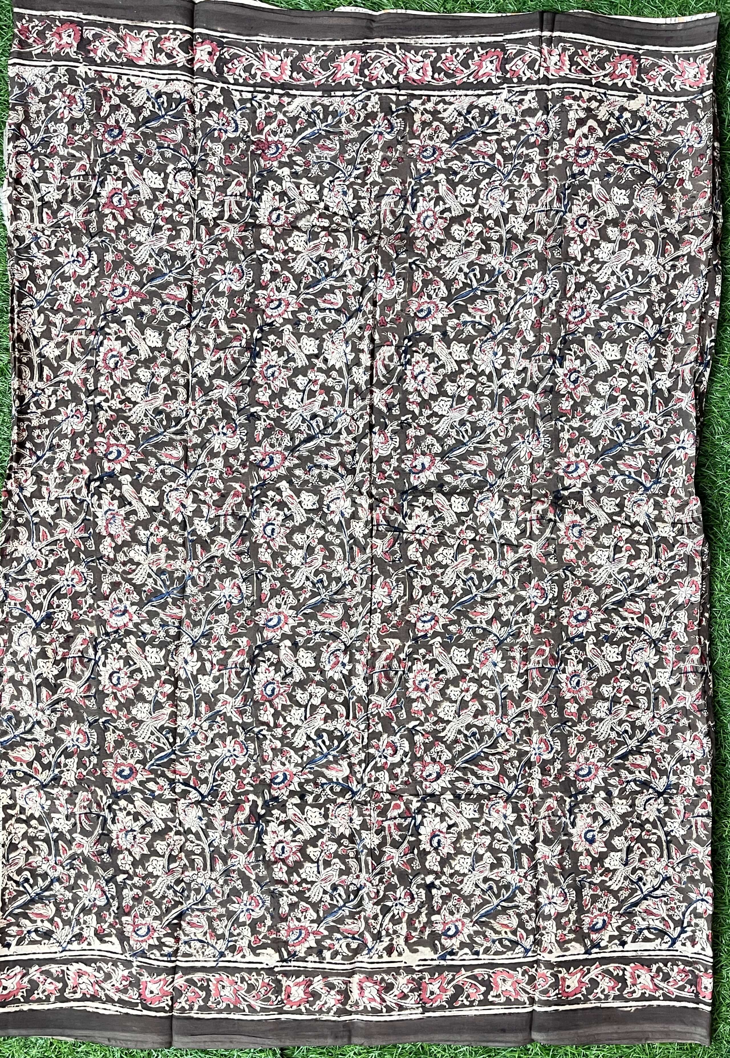 Hand Block Printed Kalamkari Chenuri Silk Saree KCSS-HB-M051