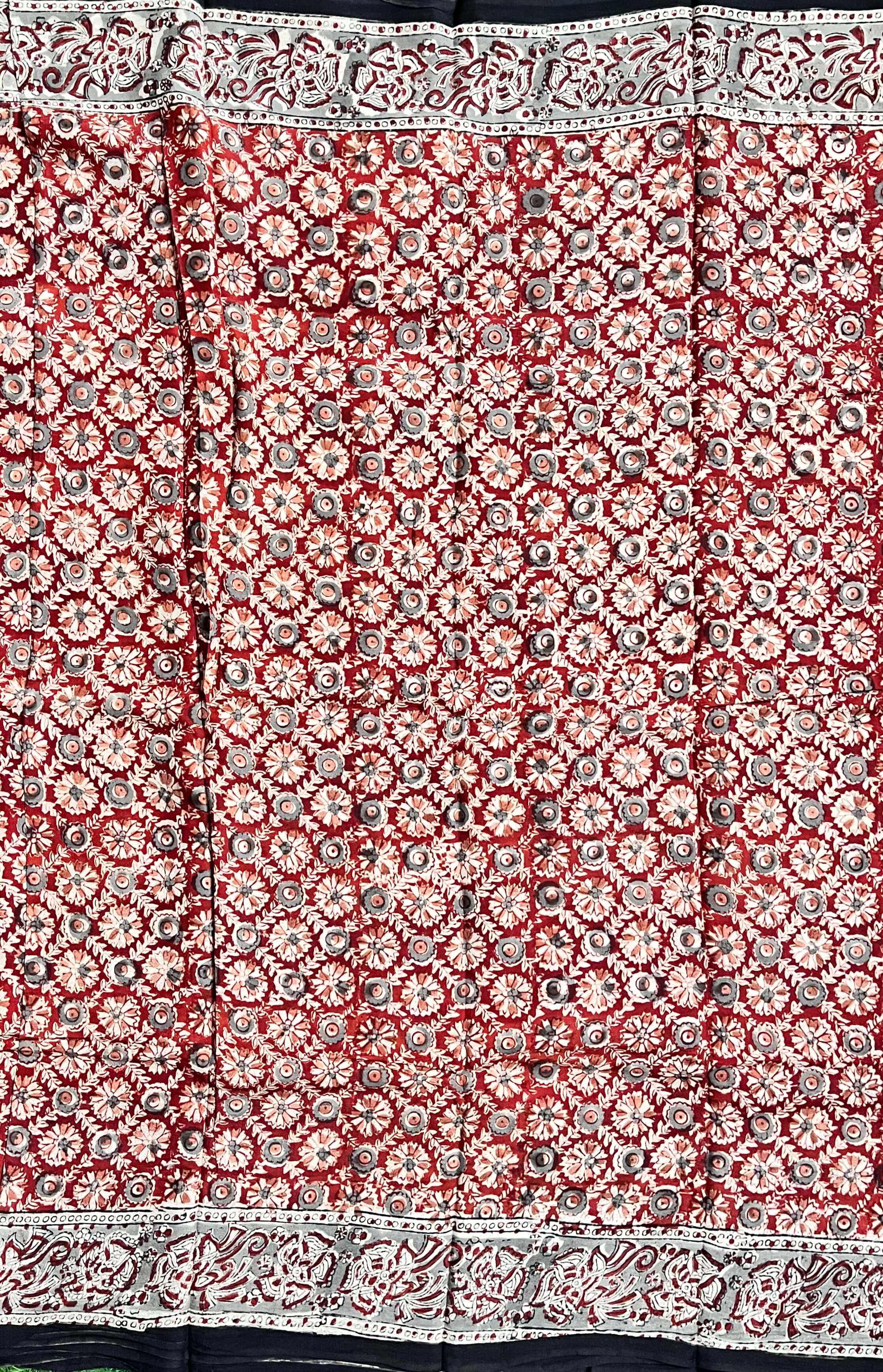 Hand Block Printed Kalamkari Chenuri Silk Saree KCSS-HB-M062