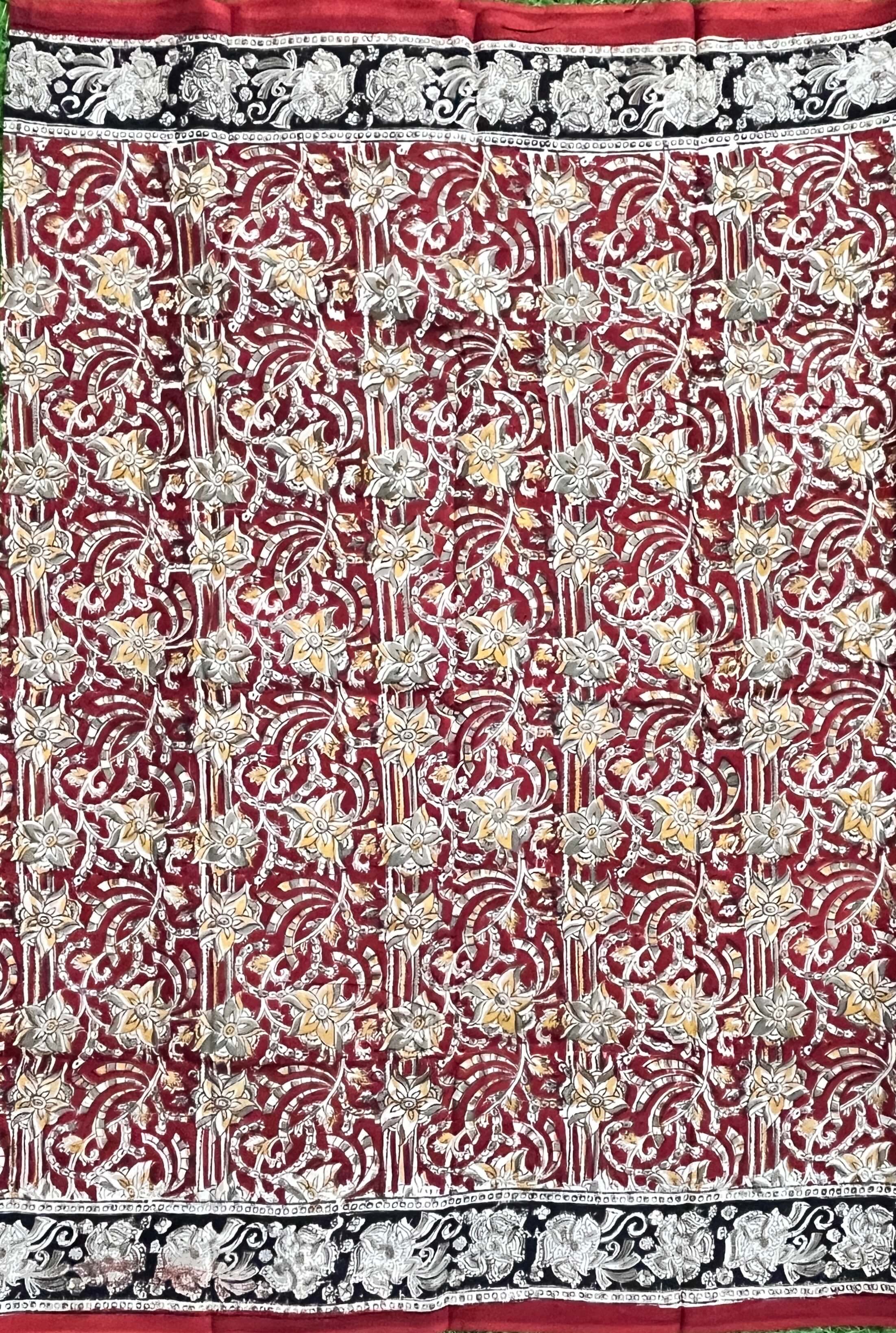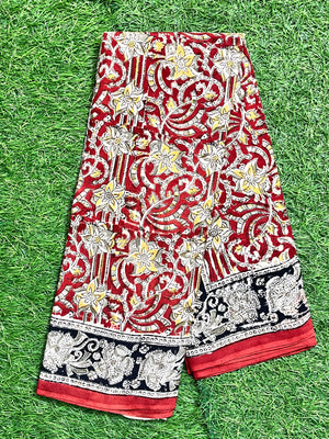 Hand Block Printed Kalamkari Chenuri Silk Saree KCSS-HB-M067