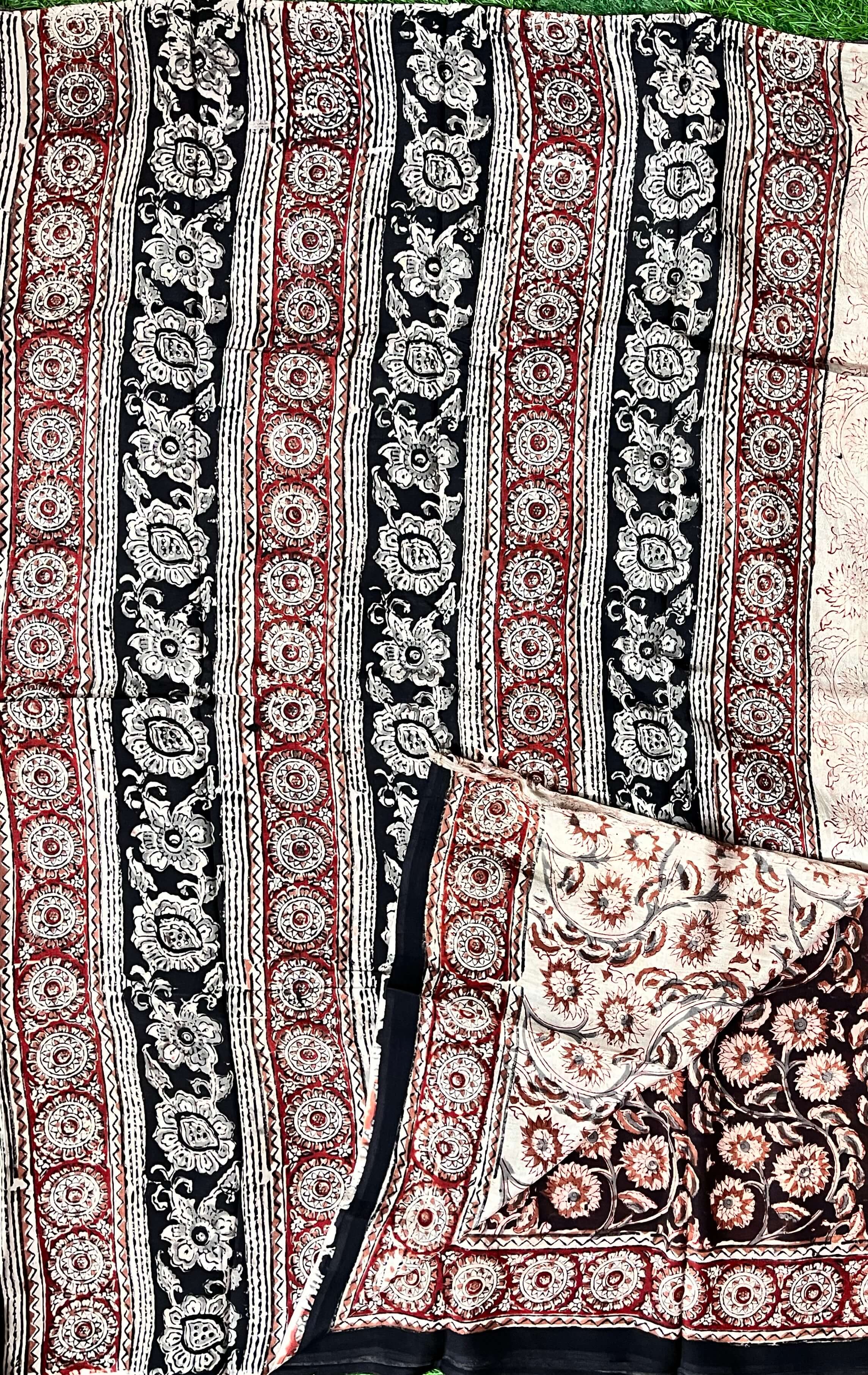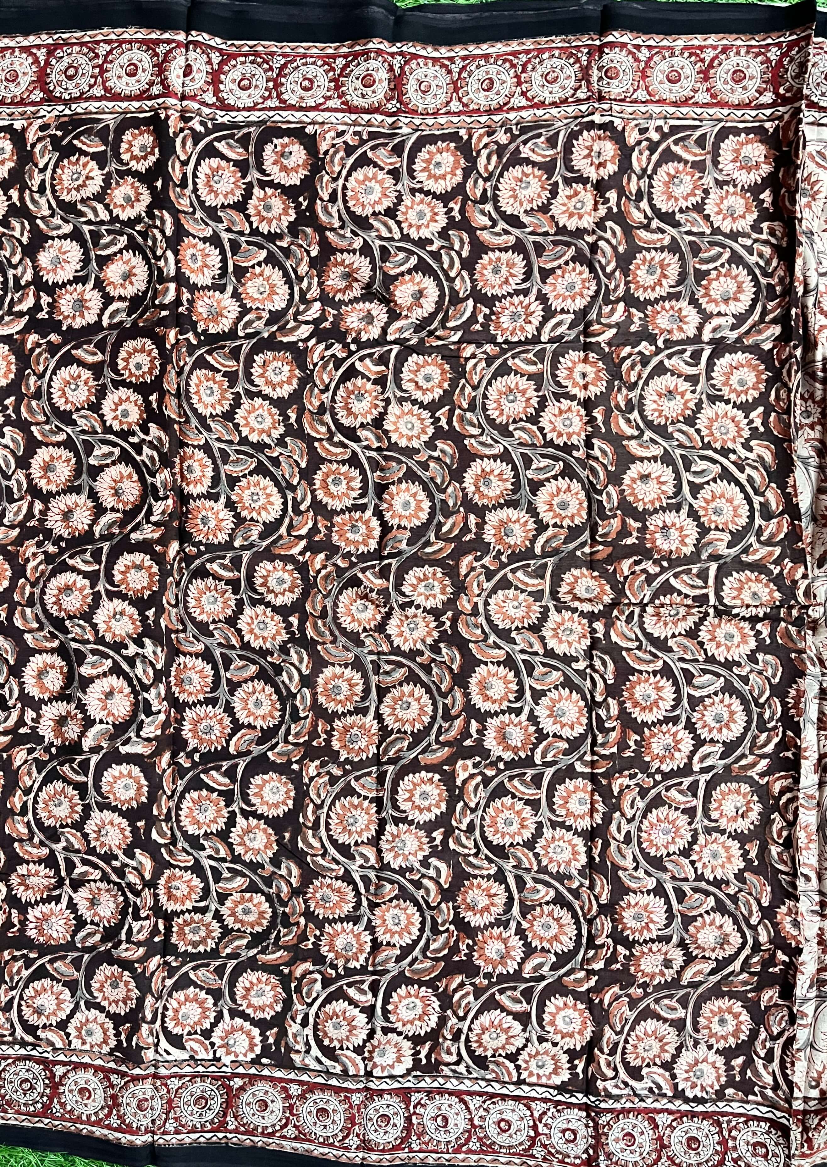 Hand Block Printed Kalamkari Chenuri Silk Saree KCSS-HB-M069