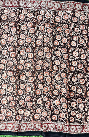 Hand Block Printed Kalamkari Chenuri Silk Saree KCSS-HB-M075
