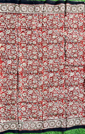Hand Block Printed Kalamkari Chenuri Silk Saree KCSS-HB-M081