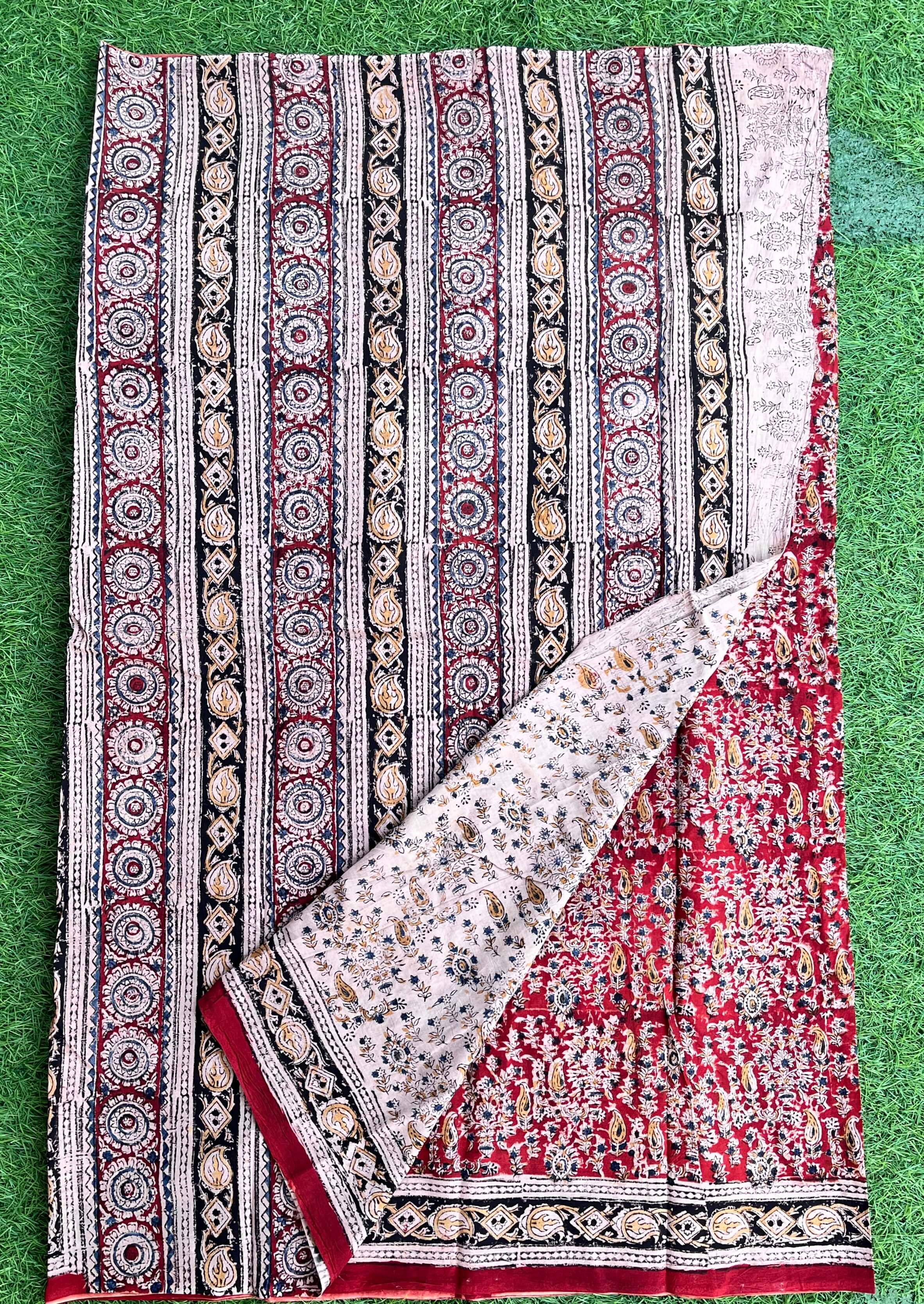 Hand Block Printed Premium LIV Cotton Kalamkari Saree KLIVHPC-M073
