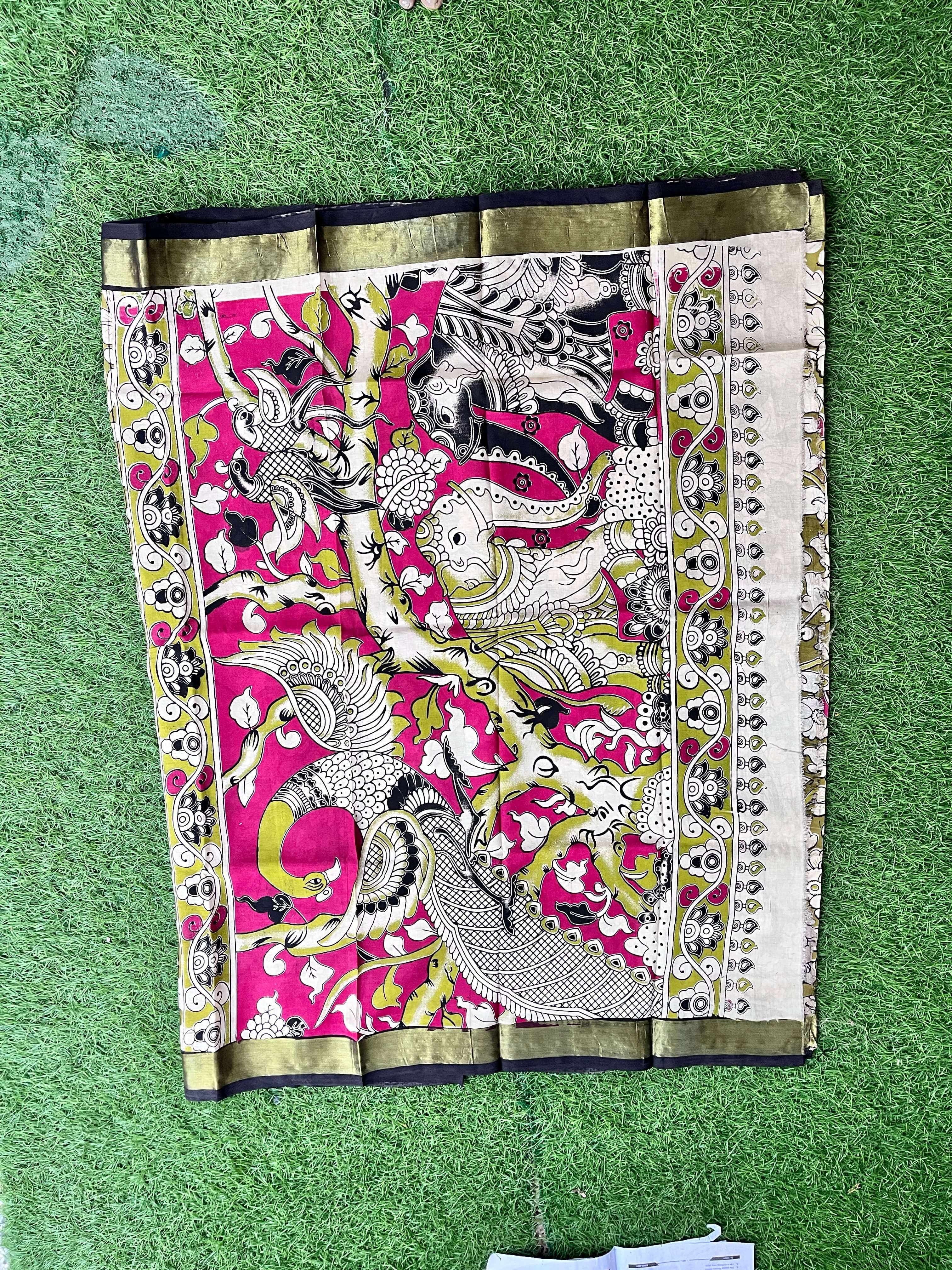 Kalamkari Art Silk Saree With Zari Border-CLRS-M004