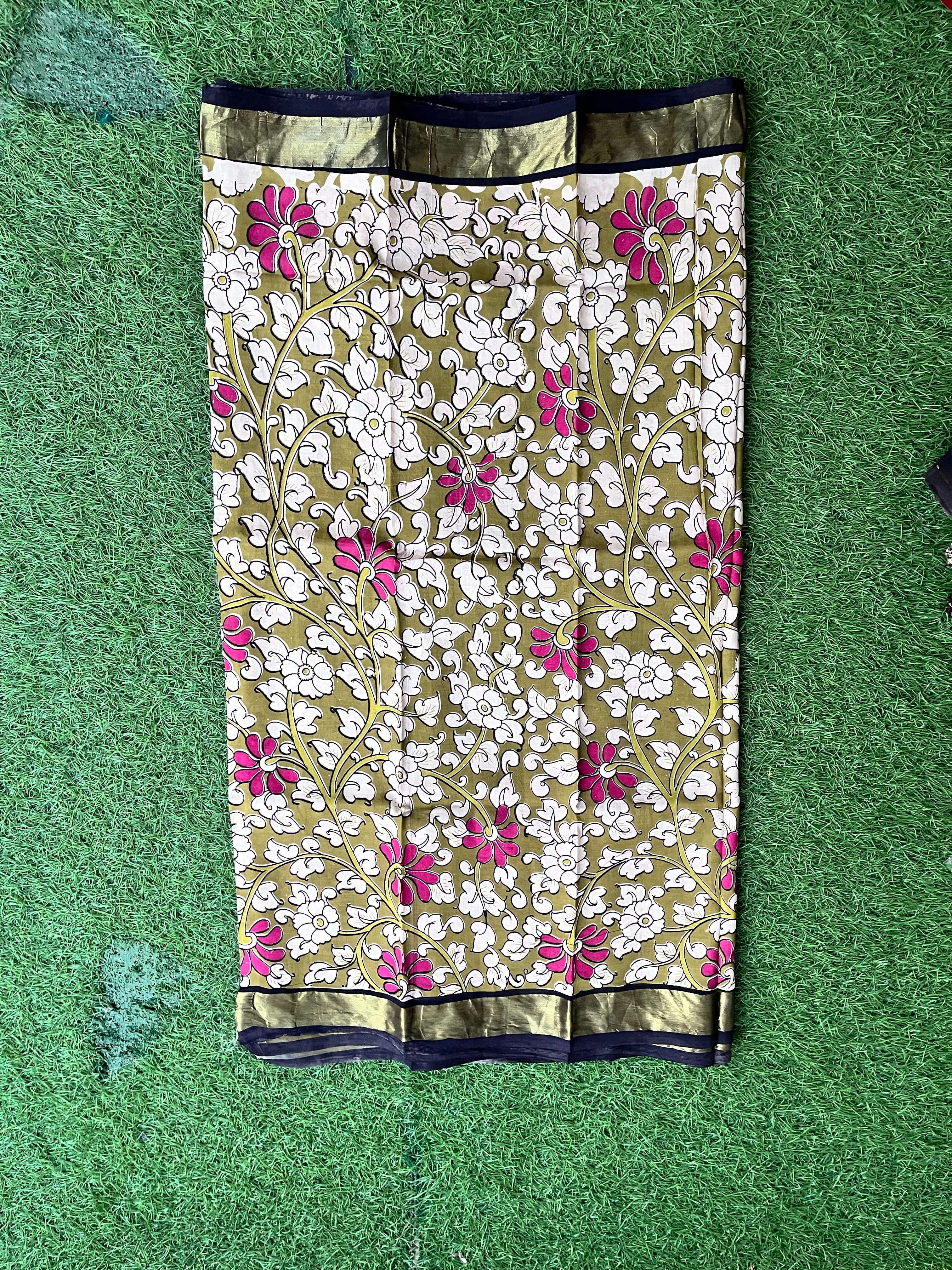 Celebrate timeless Indian artistry with our elegant Kalamkari Art Silk Saree, designed to add grace to every occasion. Crafted in premium-quality art silk, this saree features rich Kalamkari-inspired motifs that reflect traditional craftsmanship with a modern touch.