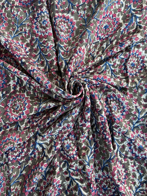 Our fabrics are made from premium Chennuri silk and natural dyes, using time-honored hand block-printing techniques. As these fabrics are crafted entirely by hand, minor smudges and slight irregularities are natural and add to their unique character. Please follow our care instructions to maintain their beauty and longevity.