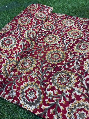 Traditional Kalamkari Block Printed Chennuri Silk Fabric