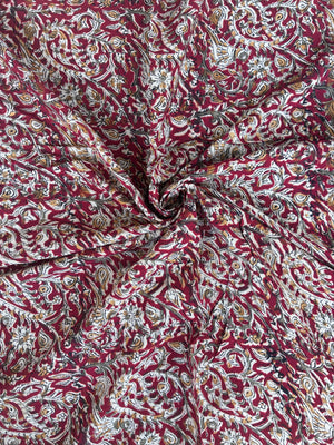 Kalamkari fabric is a traditional Indian textile celebrated for its intricate hand-painted or block-printed designs. This versatile fabric is ideal for creating elegant fashion garments — from sarees and suits to contemporary outfits — allowing you to combine heritage with modern style.