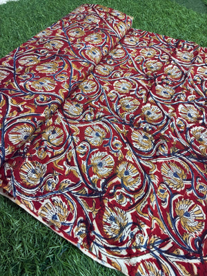 Our fabrics are made from premium Chennuri silk and natural dyes, using time-honored hand block-printing techniques. As these fabrics are crafted entirely by hand, minor smudges and slight irregularities are natural and add to their unique character. Please follow our care instructions to maintain their beauty and longevity.
