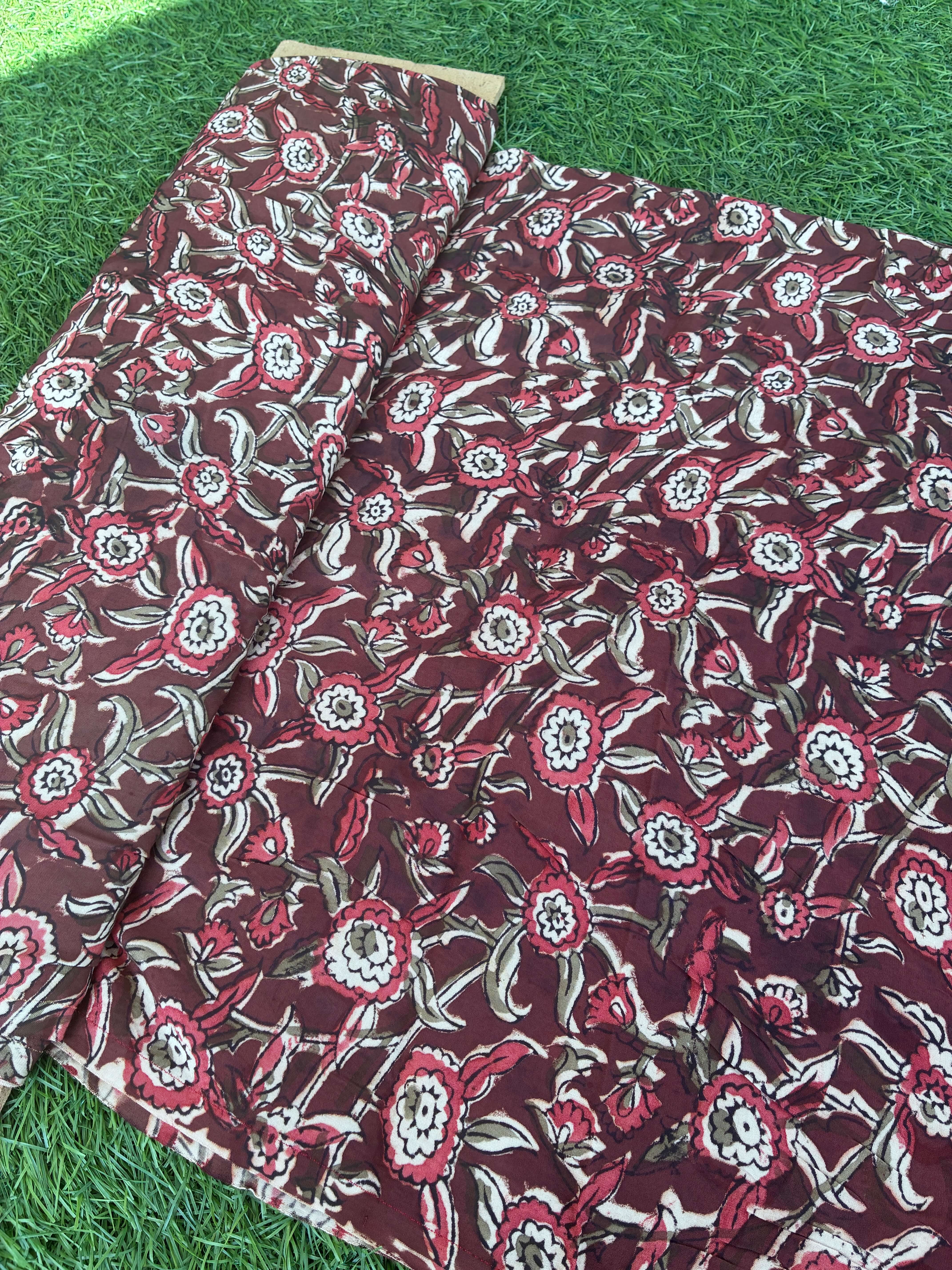 Our fabrics are made from premium Chennuri silk and natural dyes, using time-honored hand block-printing techniques. As these fabrics are crafted entirely by hand, minor smudges and slight irregularities are natural and add to their unique character. Please follow our care instructions to maintain their beauty and longevity.