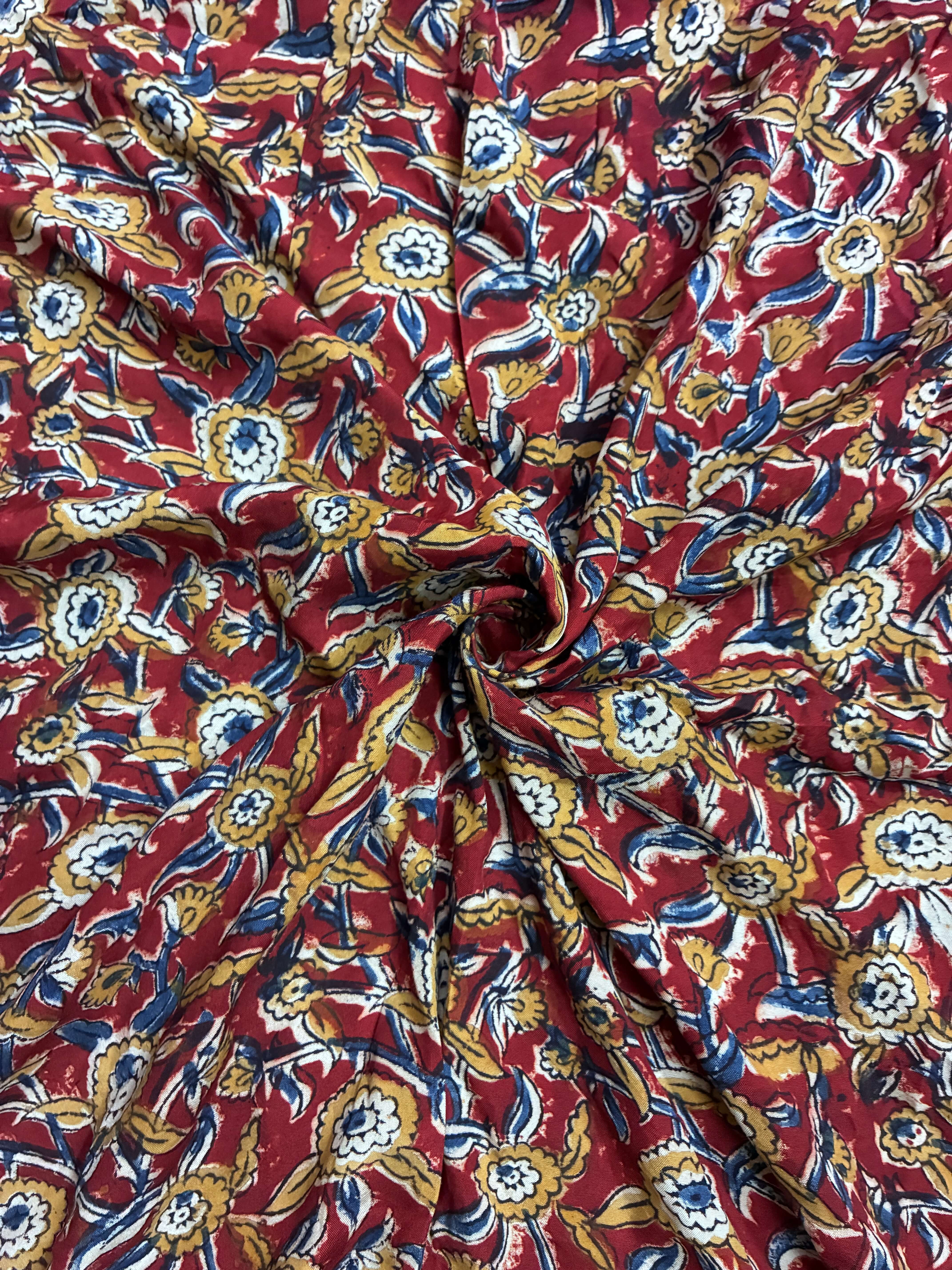 Kalamkari fabric is a traditional Indian textile celebrated for its intricate hand-painted or block-printed designs. This versatile fabric is ideal for creating elegant fashion garments — from sarees and suits to contemporary outfits — allowing you to combine heritage with modern style.