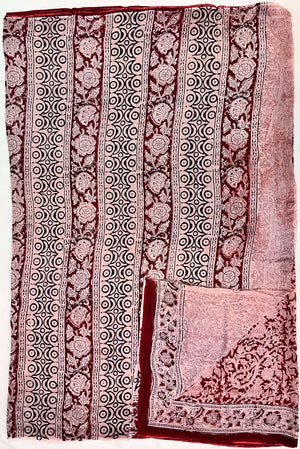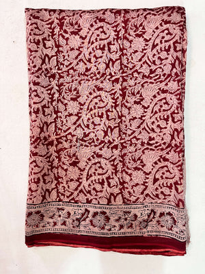 Made from our lightweight cotton blend featuring Chanderi Silk , this exquisite saree showcases traditional Kalamkari hand block prints using natural dyes.