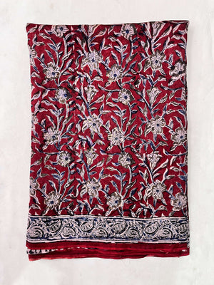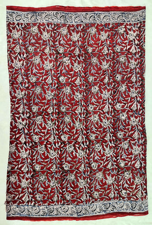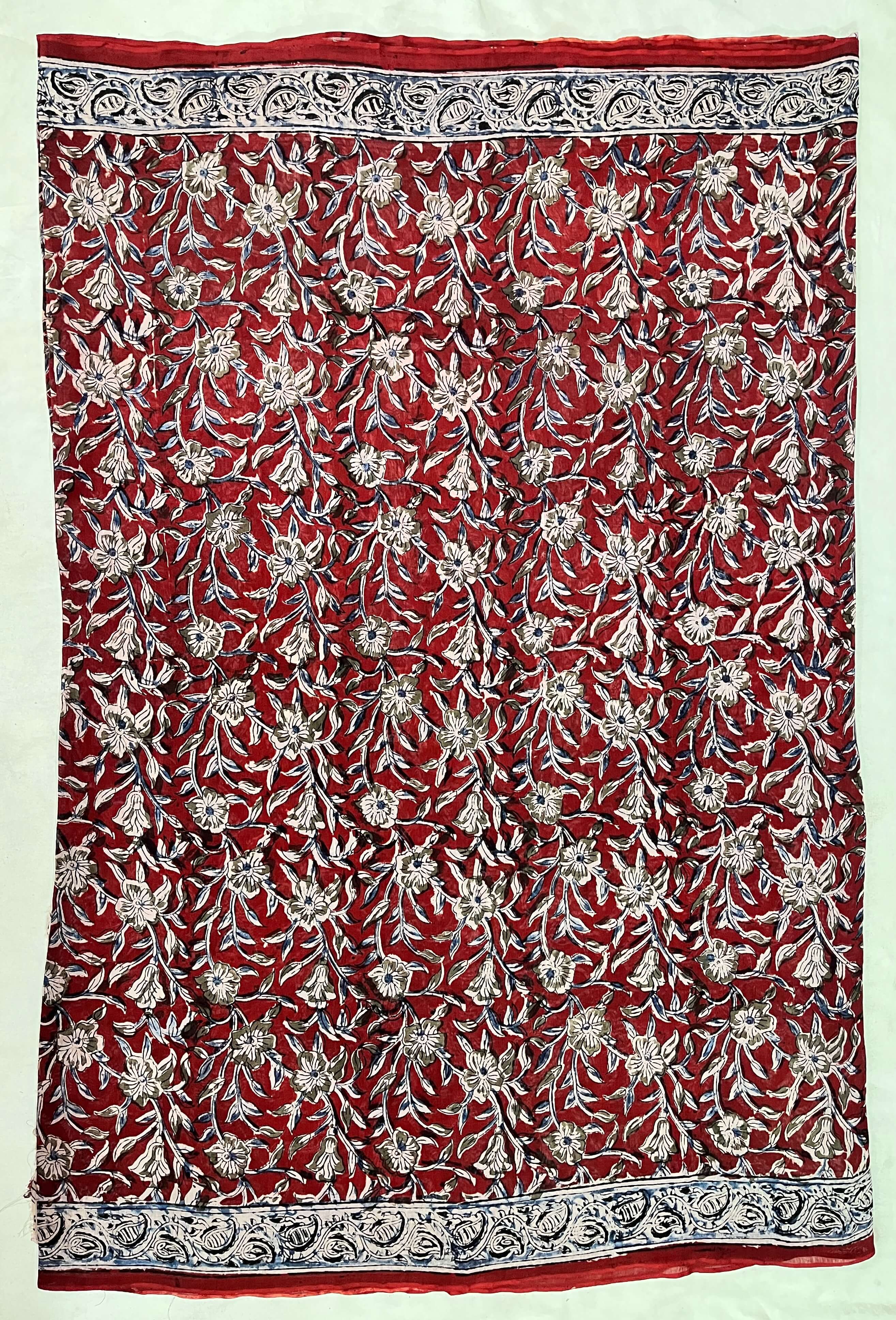 Made from our lightweight cotton blend featuring Chanderi Silk , this exquisite saree showcases traditional Kalamkari hand block prints using natural dyes.