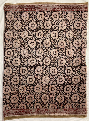 Made from our lightweight cotton blend featuring Chanderi Silk , this exquisite saree showcases traditional Kalamkari hand block prints using natural dyes.