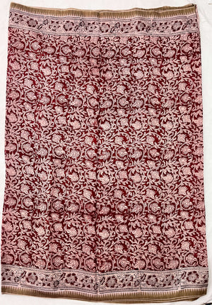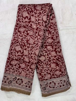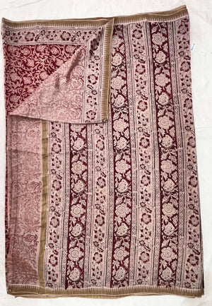 Made from our lightweight cotton blend featuring Chanderi Silk , this exquisite saree showcases traditional Kalamkari hand block prints using natural dyes.