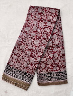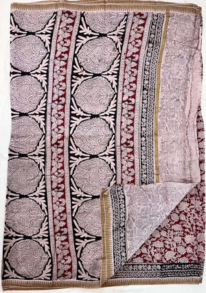 Made from our lightweight cotton blend featuring Chanderi Silk , this exquisite saree showcases traditional Kalamkari hand block prints using natural dyes.