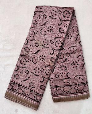 Made from our lightweight cotton blend featuring Chanderi Silk , this exquisite saree showcases traditional Kalamkari hand block prints using natural dyes.