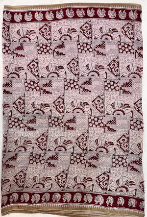 Made from our lightweight cotton blend featuring Chanderi Silk , this exquisite saree showcases traditional Kalamkari hand block prints using natural dyes.