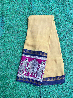 Kalamkari Mangalagiri Silk Gap Border Saree-KDGB-SP-M016