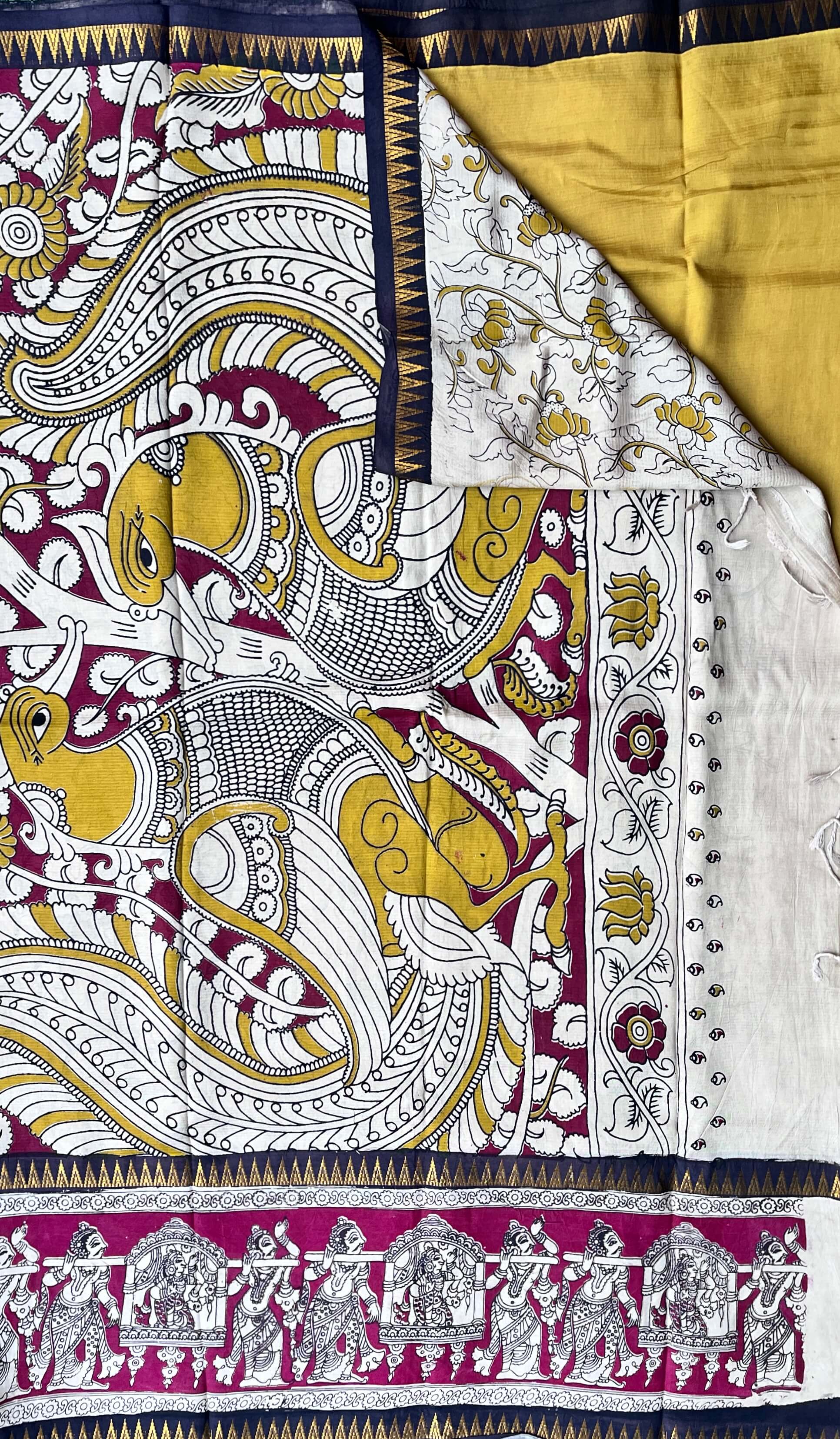 We take pride in offering sarees that are not just pieces of clothing but works of art. Our Kalamkari sarees are crafted from the finest fabrics, ensuring a luxurious feel and timeless appeal.