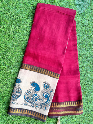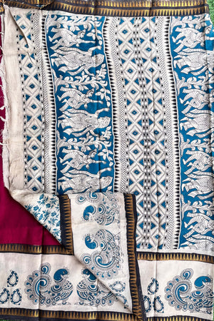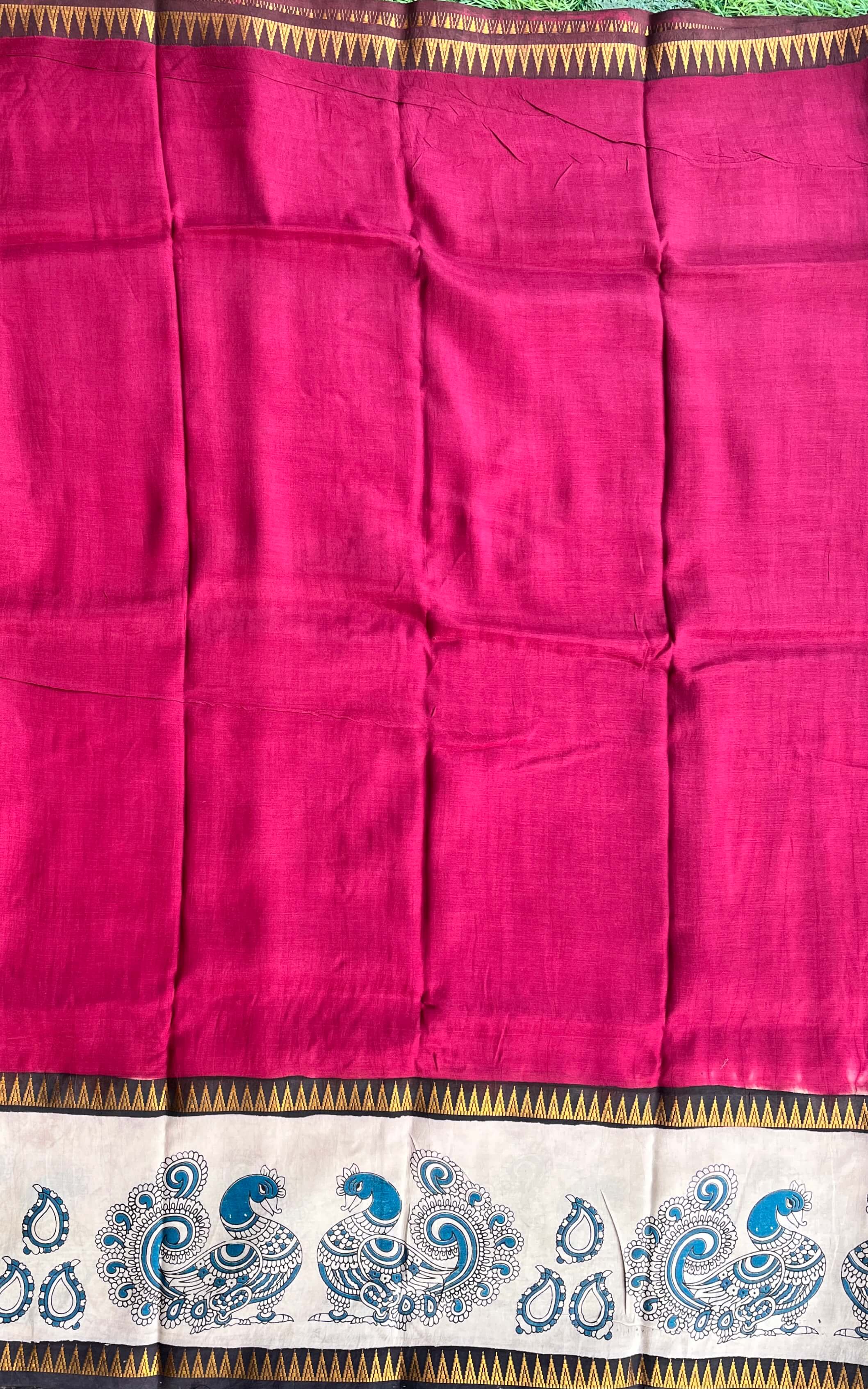Kalamkari Mangalagiri Silk Gap Border Saree-KDGB-SP-M031