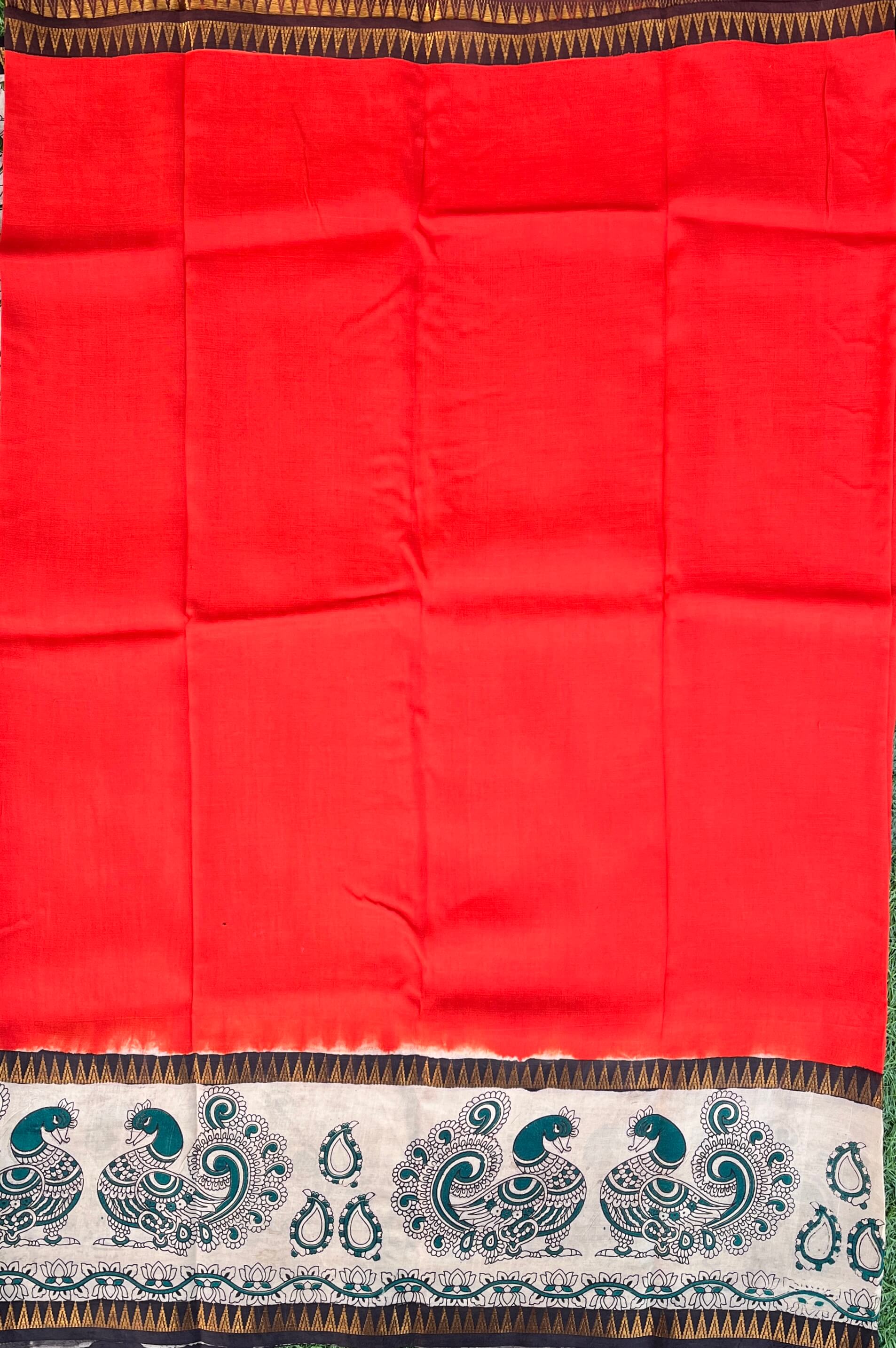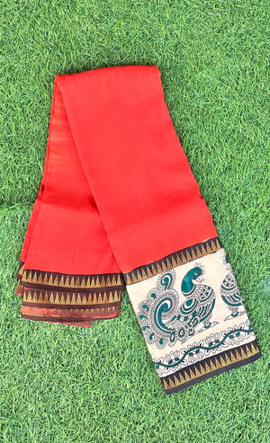 Kalamkari Mangalagiri Silk Gap Border Saree-KDGB-SP-M038