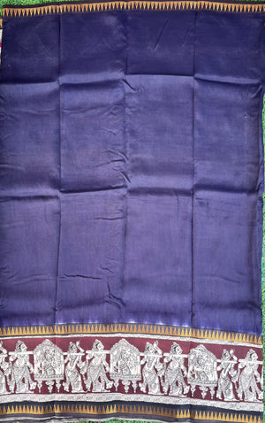 Kalamkari Mangalagiri Silk Gap Border Saree-KDGB-SP-M040