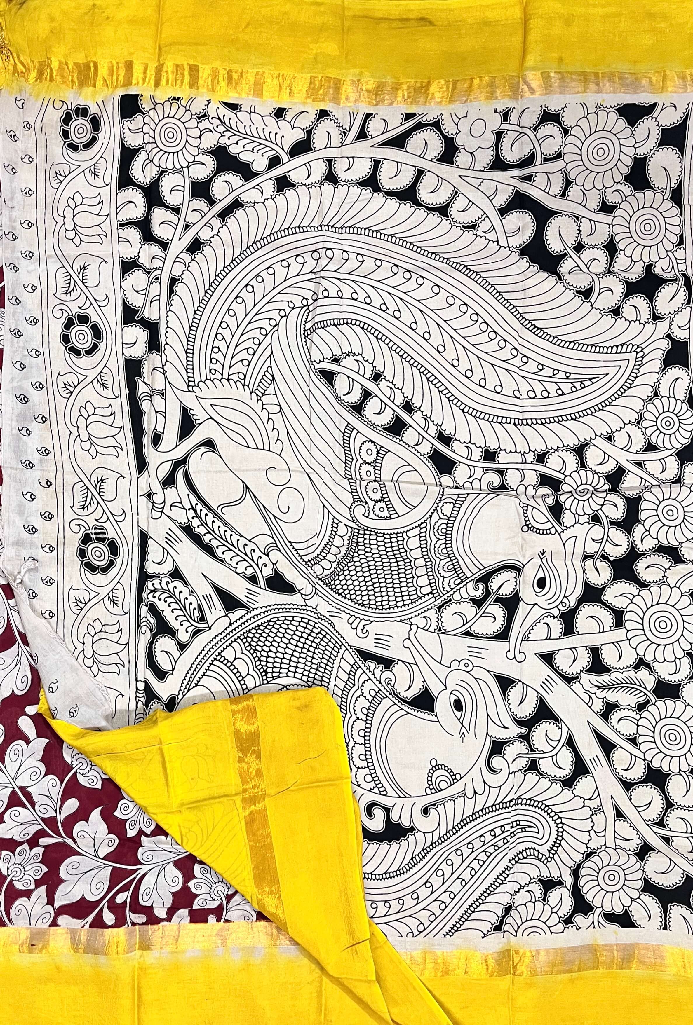 We take pride in offering sarees that are not just pieces of clothing but works of art. Our Kalamkari sarees are crafted from the finest fabrics, ensuring a luxurious feel and timeless appeal.