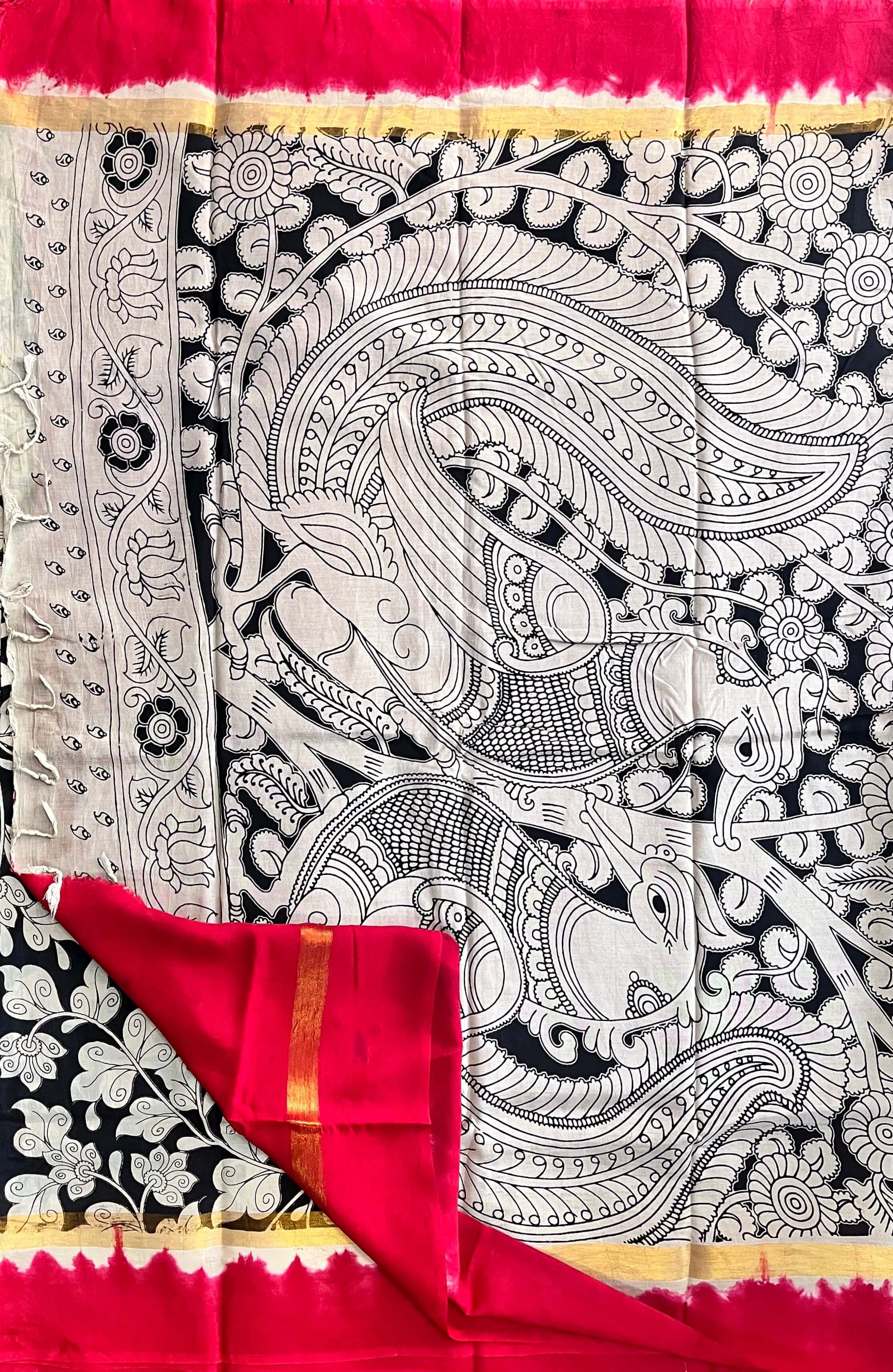 We take pride in offering sarees that are not just pieces of clothing but works of art. Our Kalamkari sarees are crafted from the finest fabrics, ensuring a luxurious feel and timeless appeal.