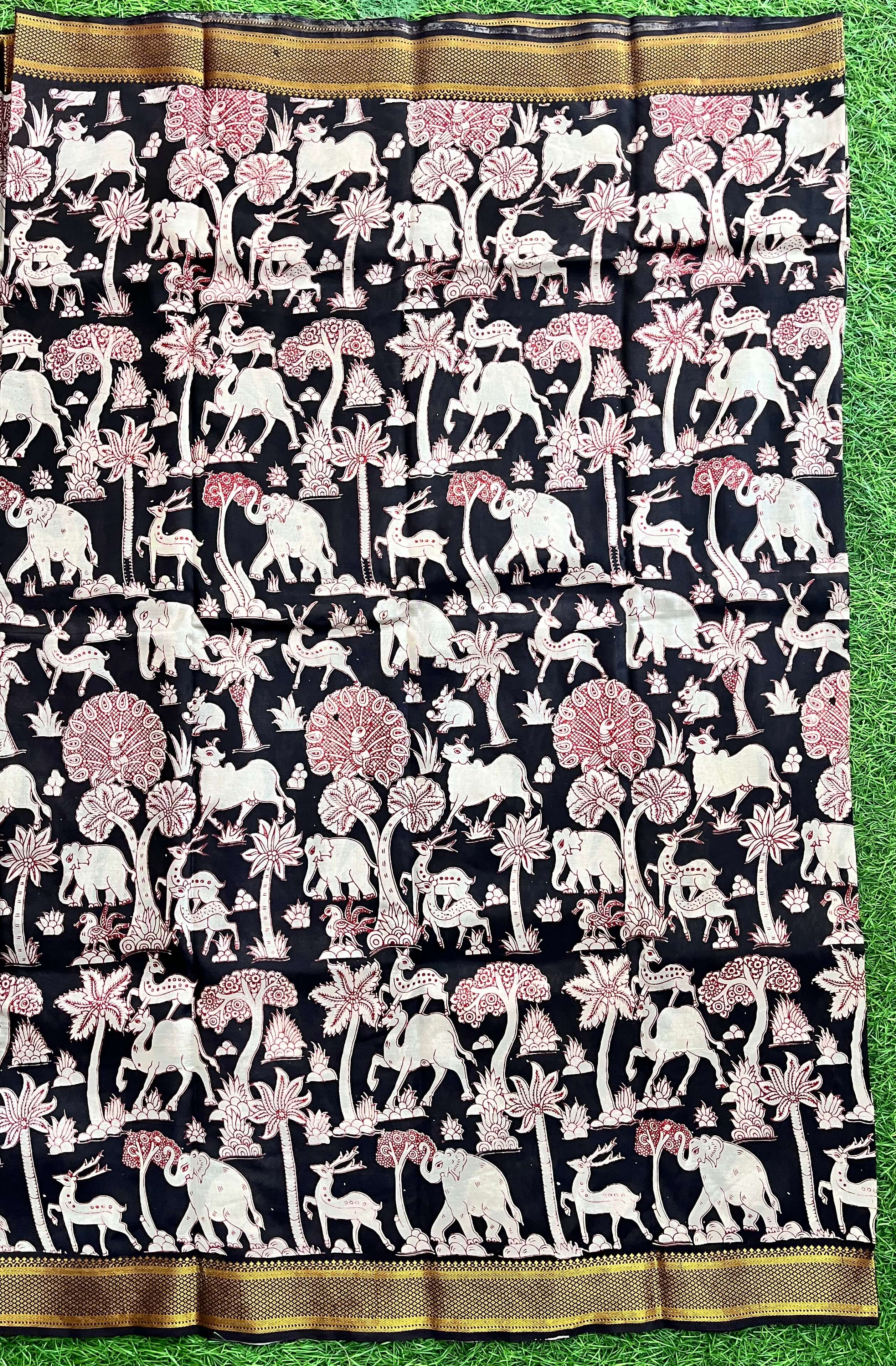 Made of our light weight cotton saree with kalamkari screen prints.