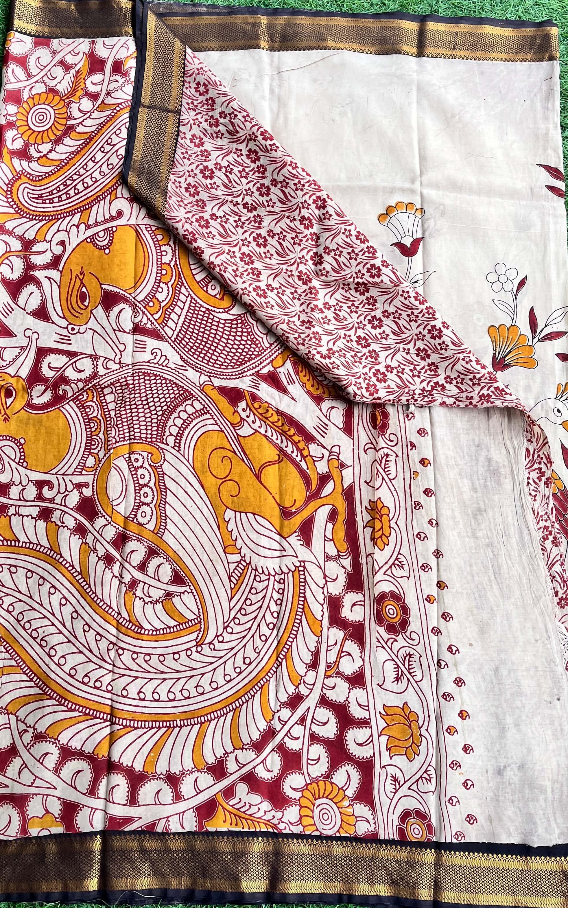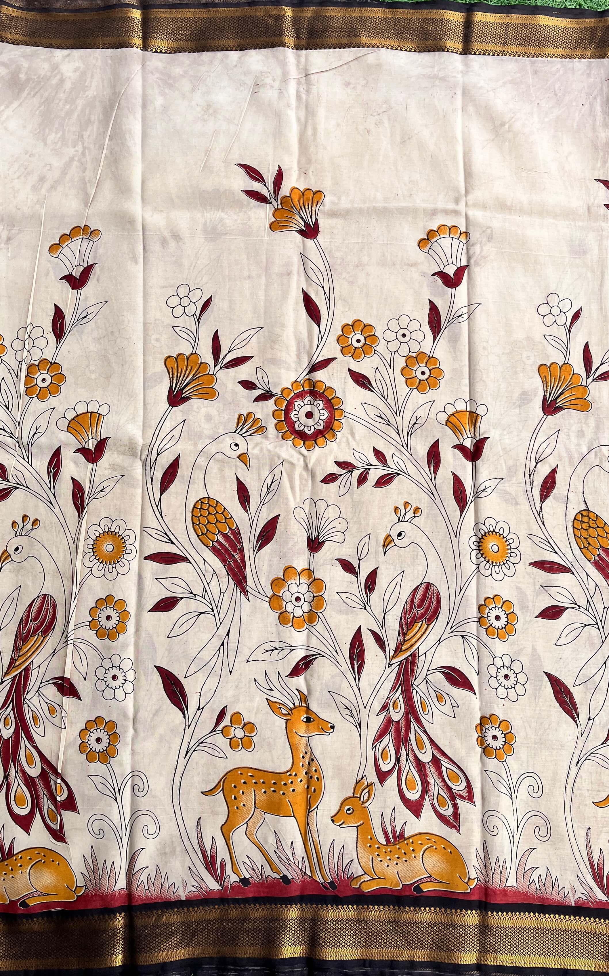 We take pride in offering sarees that are not just pieces of clothing but works of art. Our Kalamkari sarees are crafted from the finest fabrics, ensuring a luxurious feel and timeless appeal.