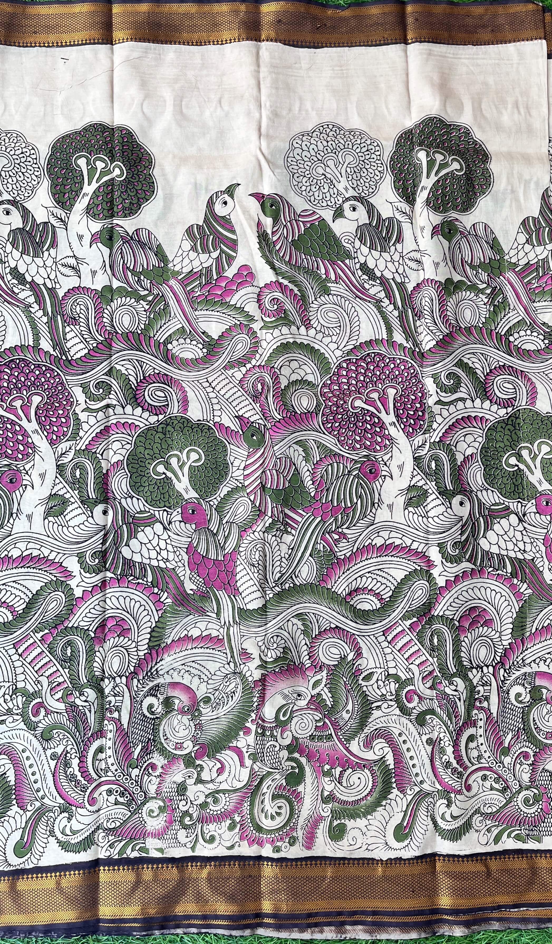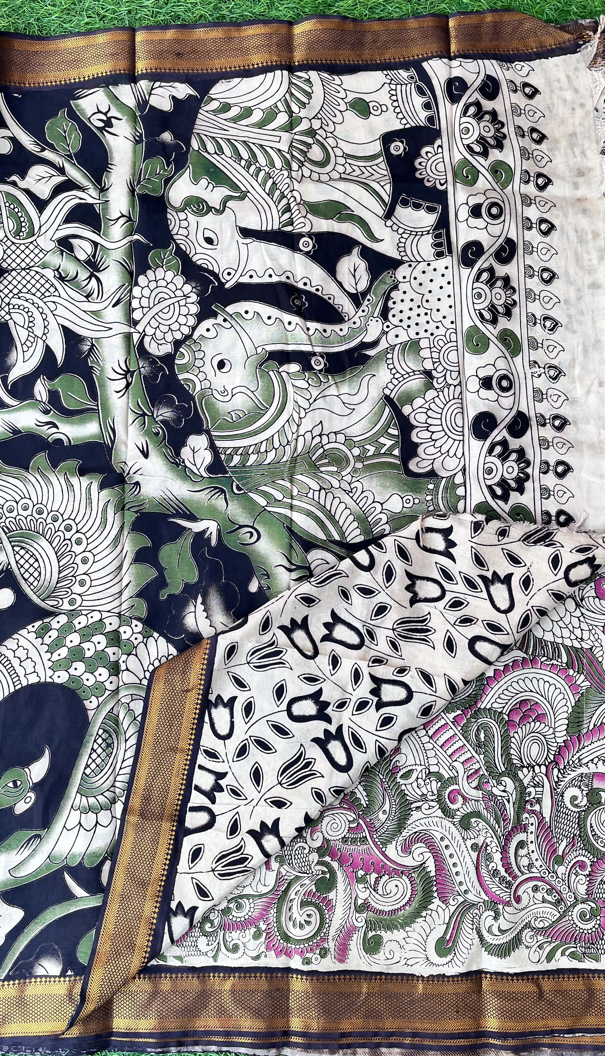 We take pride in offering sarees that are not just pieces of clothing but works of art. Our Kalamkari sarees are crafted from the finest fabrics, ensuring a luxurious feel and timeless appeal.