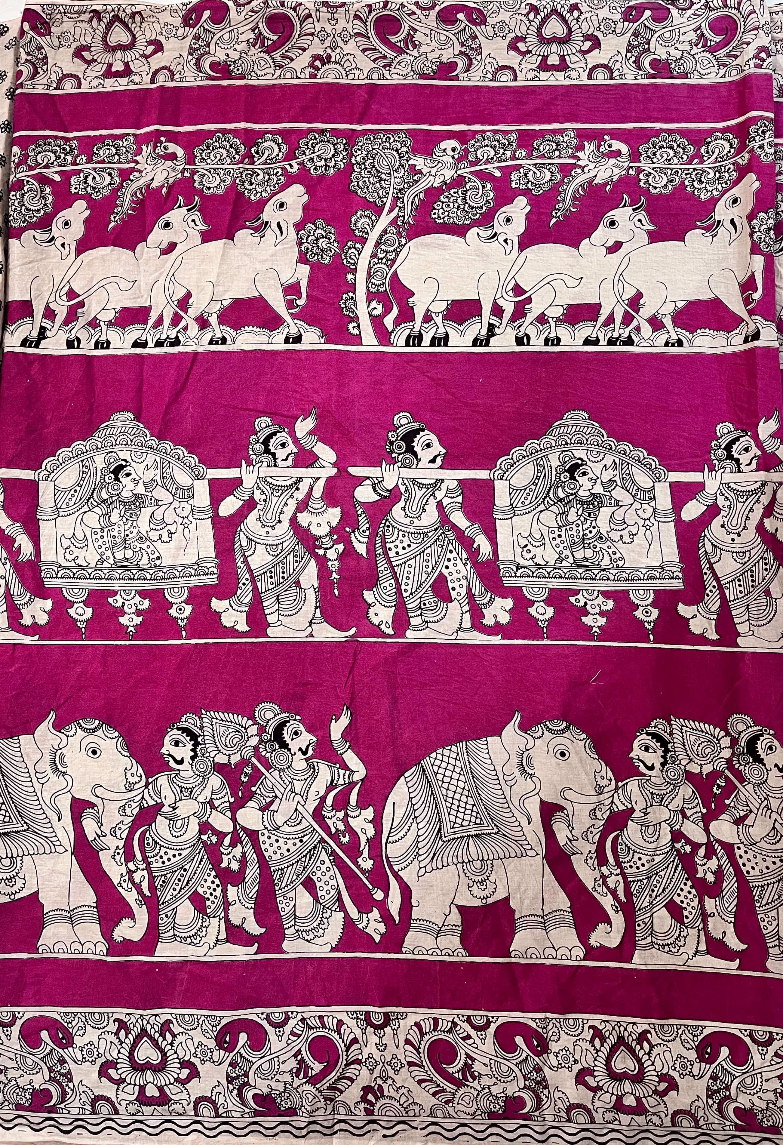 Saree Length: 6.2 to 6.4 meters (Which includes a stunning Kalamkari blouse piece adorned with beautiful motifs )