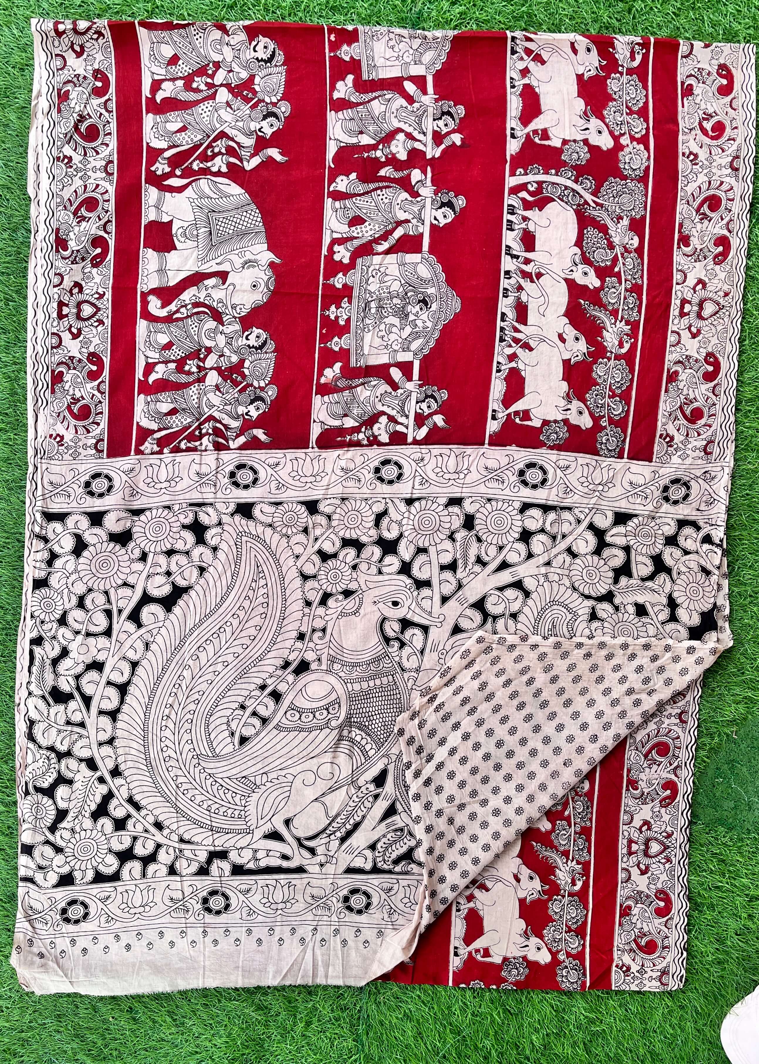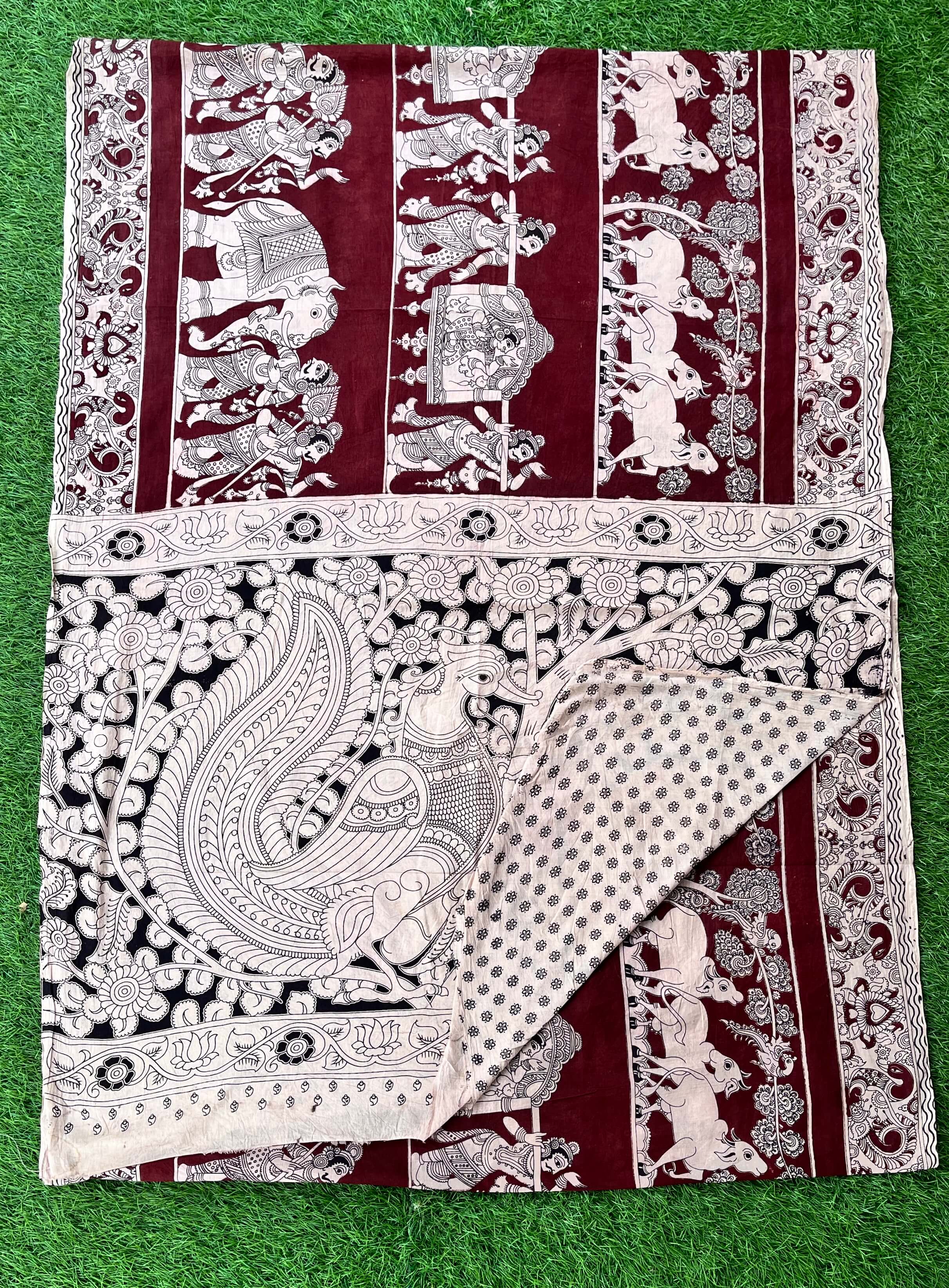 We take pride in offering sarees that are not just pieces of clothing but works of art. Our Kalamkari sarees are crafted from the finest fabrics, ensuring a luxurious feel and timeless appeal.